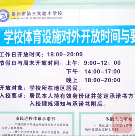 针对上述问题,川观新闻记者采访了崇州市教育局有关部门。“市民的需求,我们也通过有关渠道了解到了,目前已经简化了入校手续,市民只需携带自己的身份证,并签订学校提供的承诺书,就可入校使用这些体育设施。”崇州市教育局相关工作人员回应道。