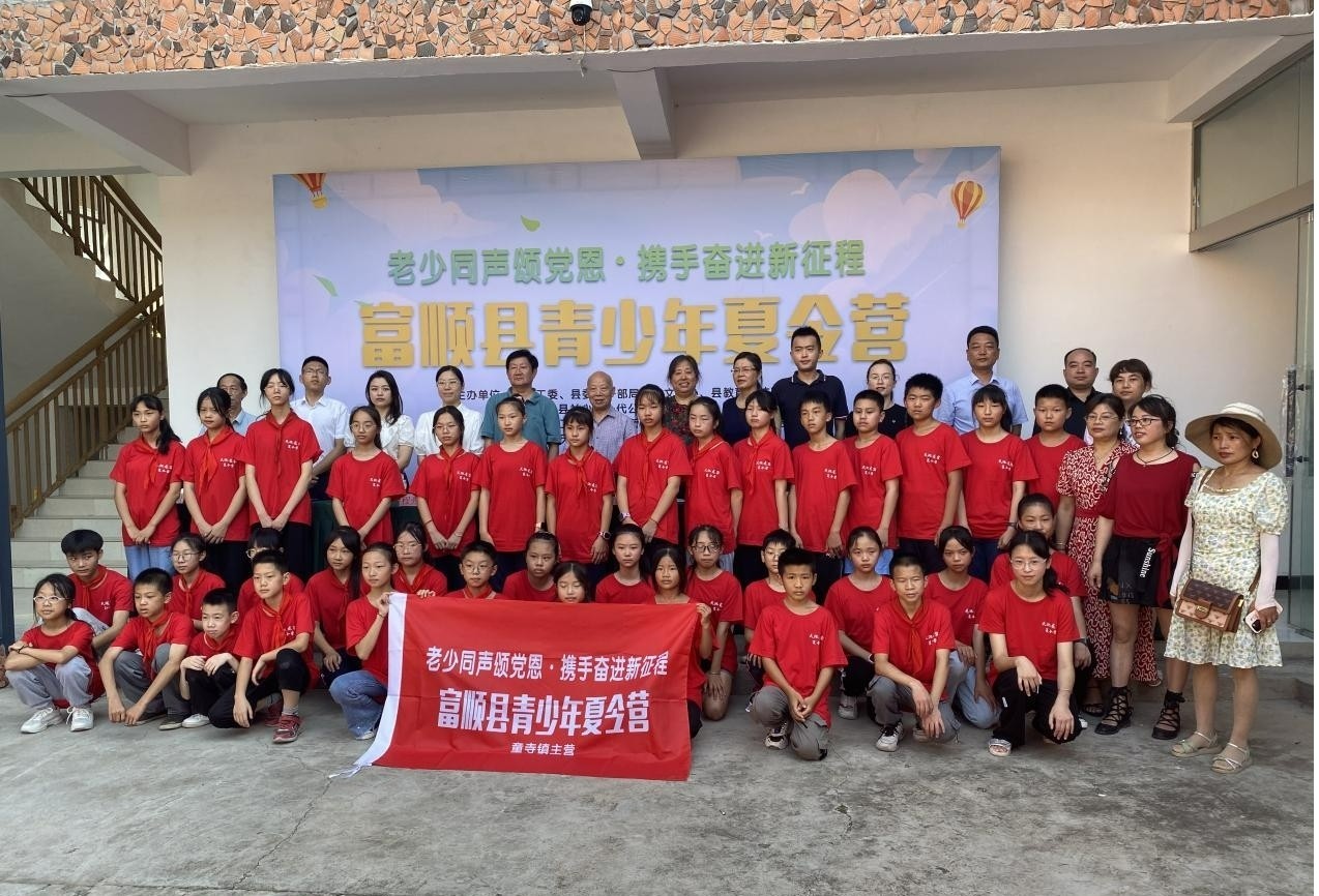 7月10日,四川省“老少同声颂党恩,携手奋进新征程”青少年夏令营富顺县分营开营仪式在富顺县童寺镇天池龙窑青少年劳动体验学习基地举行。