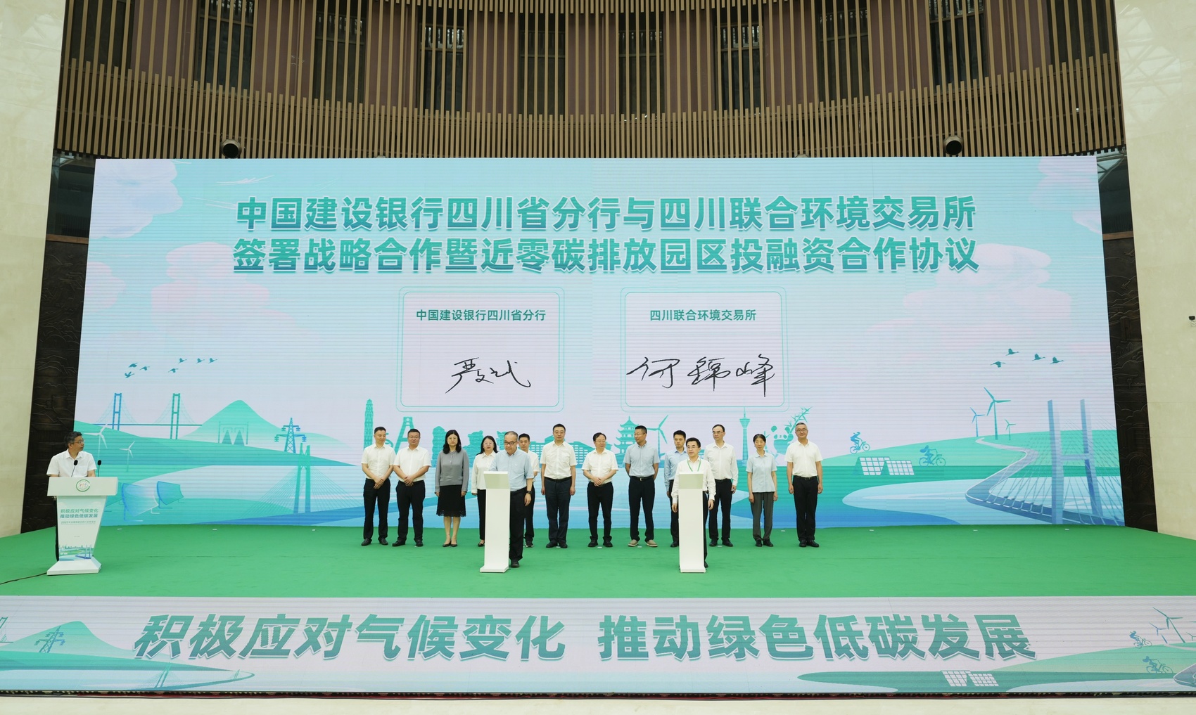 相关企业和金融机构签订气候投融资合作协议。