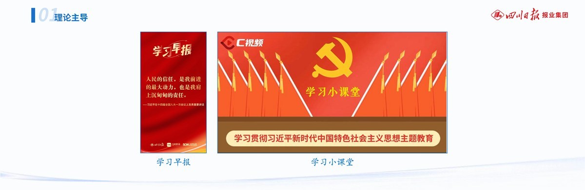 一是理论主导。始终重视党的创新理论传播,把宣传阐释习近平新时代中国特色社会主义思想作为首要政治任务,打造“学习早报”“学习小课堂”等视频产品;围绕贯彻落实习近平总书记对四川工作系列重要指示精神,在今年6月总书记来川视察一周年之际,策划推出“向总书记报告”系列产品,全网阅读量破亿。始终重视理论阵地建设,持续做强四川日报“思想周刊”、川观新闻“思想频道”,作为理论宣传优秀案例入选“奋进新时代”党的二十大主题展中央展区;结合主题教育推出“中国式现代化100问”“理响巴蜀·六个一百”红色品牌工程等特色内容,引起业界关注。