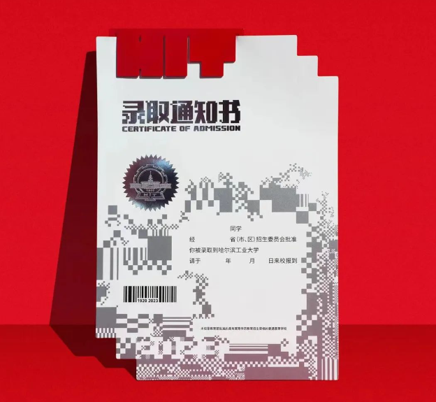 哈尔滨工业大学本科录取通知书以“传承”为主题,每位收到录取通知书的同学,都将拥有一枚特别的书签。这枚书签表面有一种特殊的涂层,该涂层集抗辐照、低挥发、耐高低温交变等性能于一体,能避免在深空极端环境下出现褪色、涂层脱落等问题,已被成功应用在“天问一号”火星探测器展示的五星红旗和着陆平台搭载的北京冬奥会和冬残奥会吉祥物图案上。