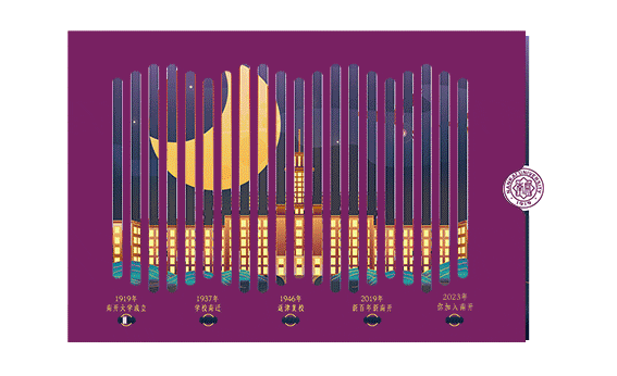 “日月山海”为信,共赴未来之约。南开大学2023年本科录取通知书整体依旧沿用封套设计,分别以南开大学校区的标志性建筑为主体画面,随着抽拉变化,日月相互交替,与南开校训“允公允能、日新月异”相合。