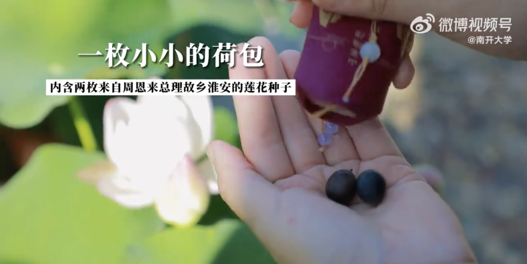 通知书中还有一个小小的荷包,里面有两枚莲花种子,这也是南开大学连续第四年为新生寄送装有莲花种子的荷包。希望新生们将两颗种子一颗留在家乡,不忘初心;一颗带来学校,见证成长。