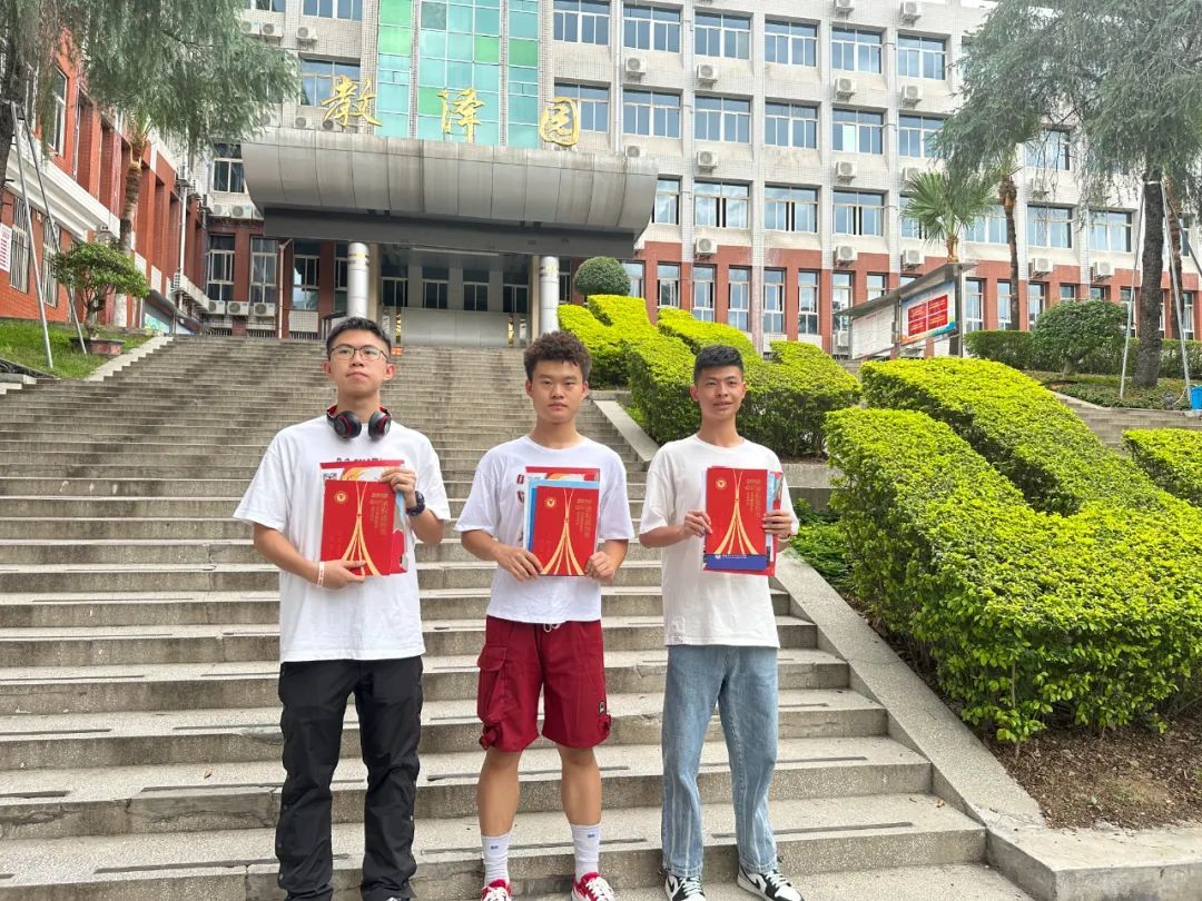 考生周奕鑫、罗卓越、汤凯翔收到录取通知书。