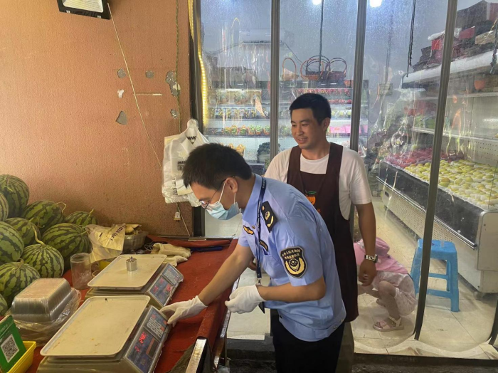 强化专项抽查。结合“春雷行动”、“铁拳”行动、民心守护行动等,不定期组织执法人员开展电子秤专项抽查92次,检查农贸市场28个次、海鲜市场2个次、超市20家次、夜市6个次、路边集中占道经营点25个次、药房12家次,检查各类电子秤达1800余台。检查发现使用不合格电子秤(误差值低于3%)11台,已责令商家停止使用返厂调校合格检定后使用;检查发现破坏计量器具准确度电子秤5台,已责令商家自行销毁并承诺诚信合法经营。