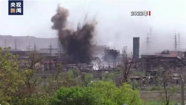 2022年3月,俄乌双方在马里乌波尔展开激烈争夺,数千名乌军和“亚速营”人员被困在亚速钢铁厂。图据央视新闻客户端