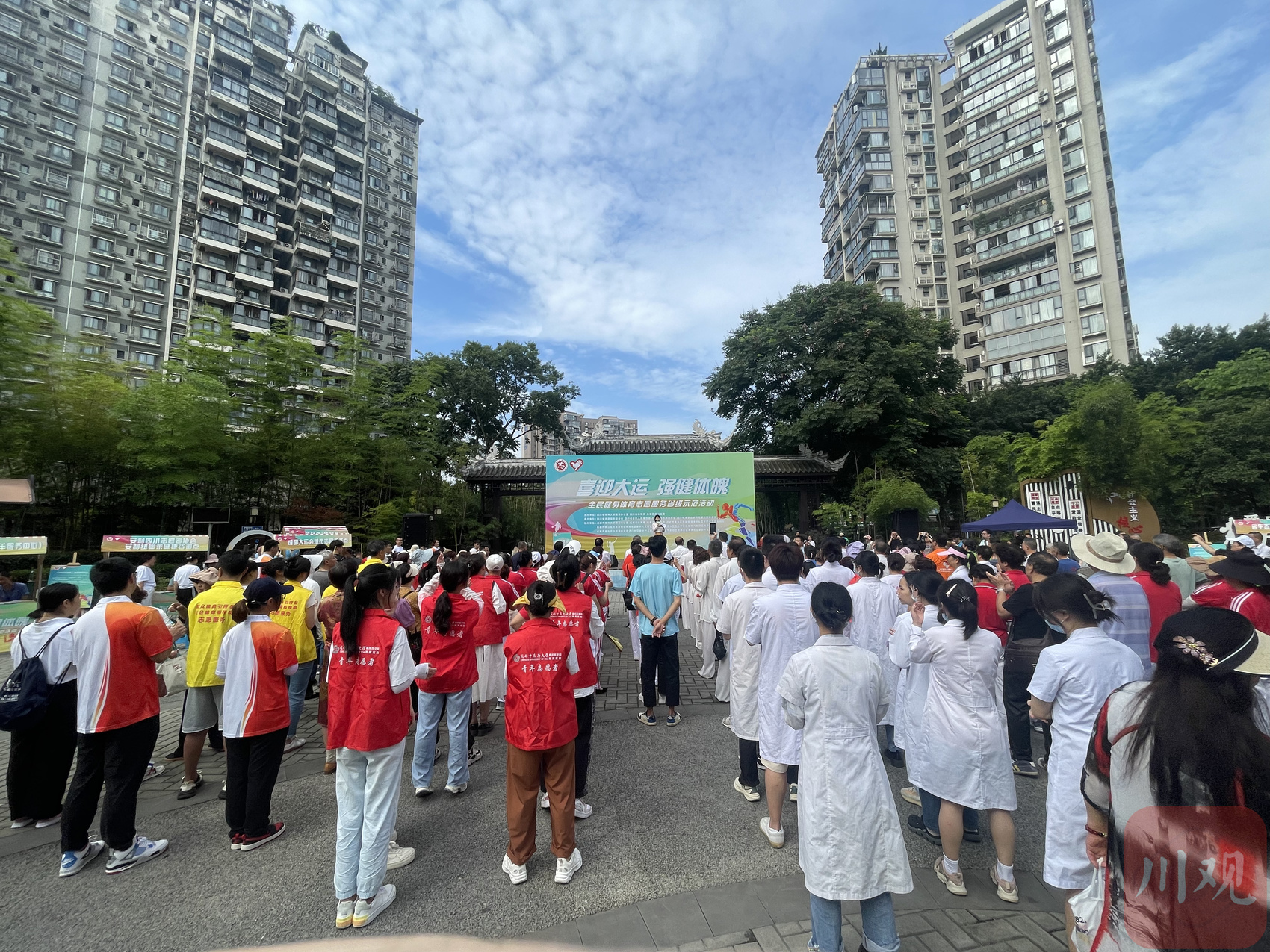 据主办方介绍,此次活动除了在青羊区清波社区设置主会场,还在锦江区枫树社区、成华区二仙桥街道、金牛区洞子口社区、武侯区高碑社区设立分会场,共设有70余个志愿服务摊位,有志愿者代表、市民群众代表共500余人参与,以成都大运会举办为契机,积极传播文明健康生活理念,促进群众体育全面发展。