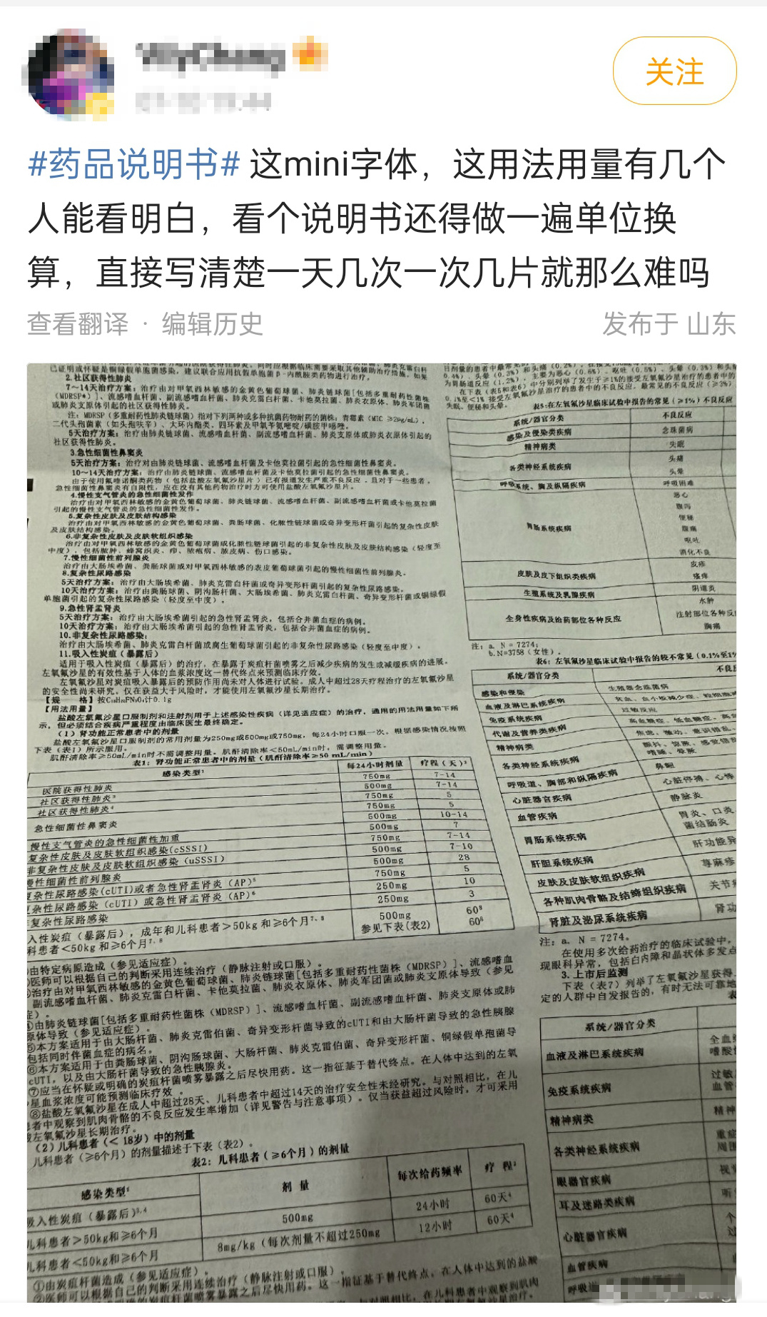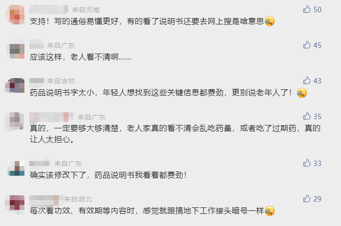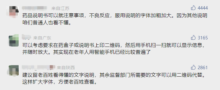 有网友也提出了药品说明书改进的意见建议,比如保留重点信息,字体加粗加大,加上二维码等↓