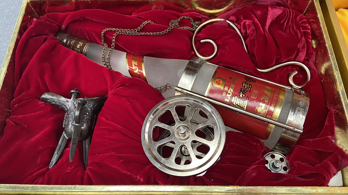 “你这酒在市面上很少,值得收藏。”在“家有老酒”鉴评活动,一套泸州老窖特曲得到了现场专家较高评价。深褐色的真皮酒盒,上面刻着“泸州老窖”四个字。打开酒盒可以看到,一个银色钢制的酒架,上面带着一大一小的车轮,一条装饰链子,拖着一瓶泸州老窖特曲,盒子里一旁还附送了一个酒樽,看起有些气派。