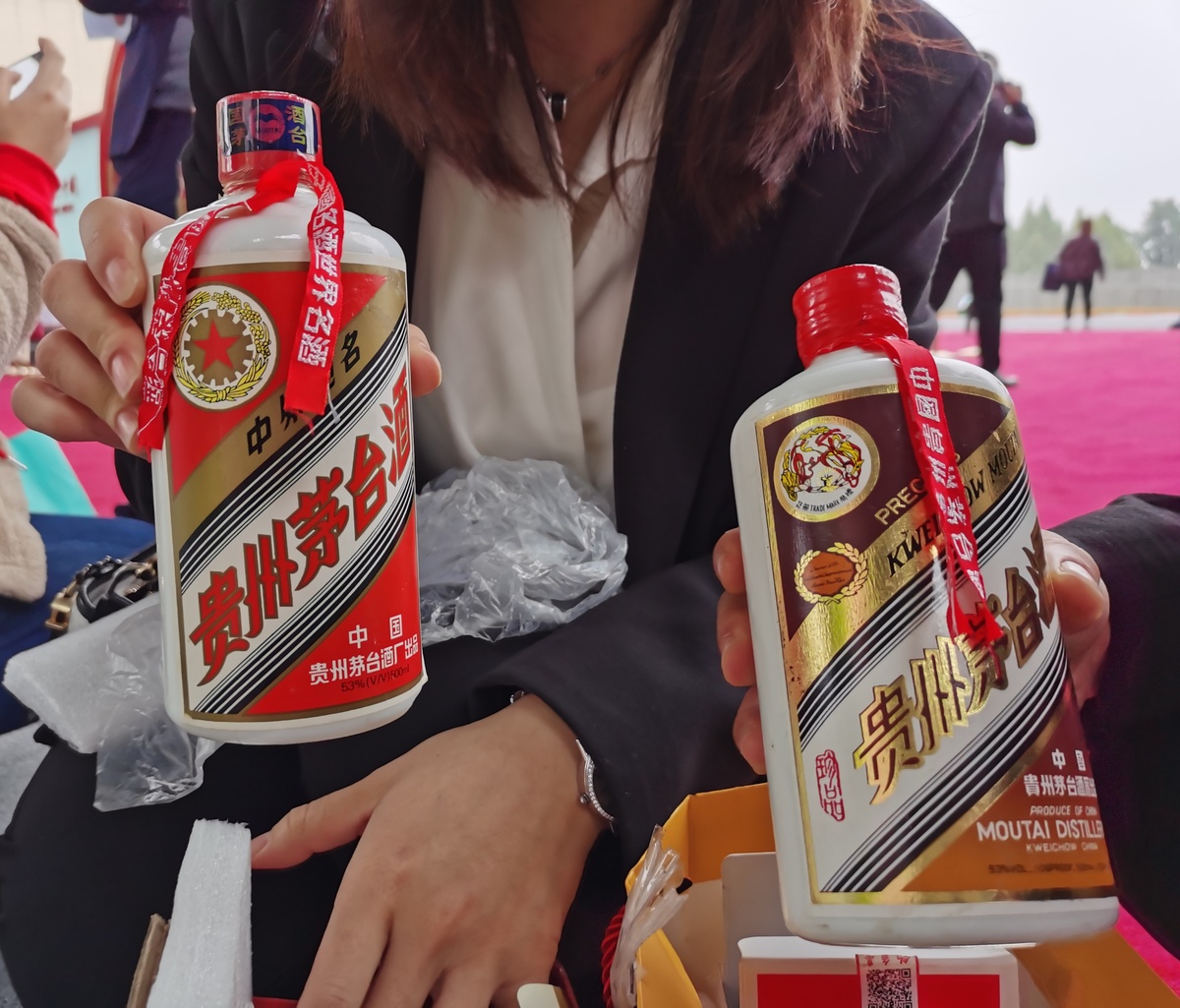 藏友带着自家的贵州茅台酒,从成都赶来参加老酒鉴评。(郭荞璐 摄)