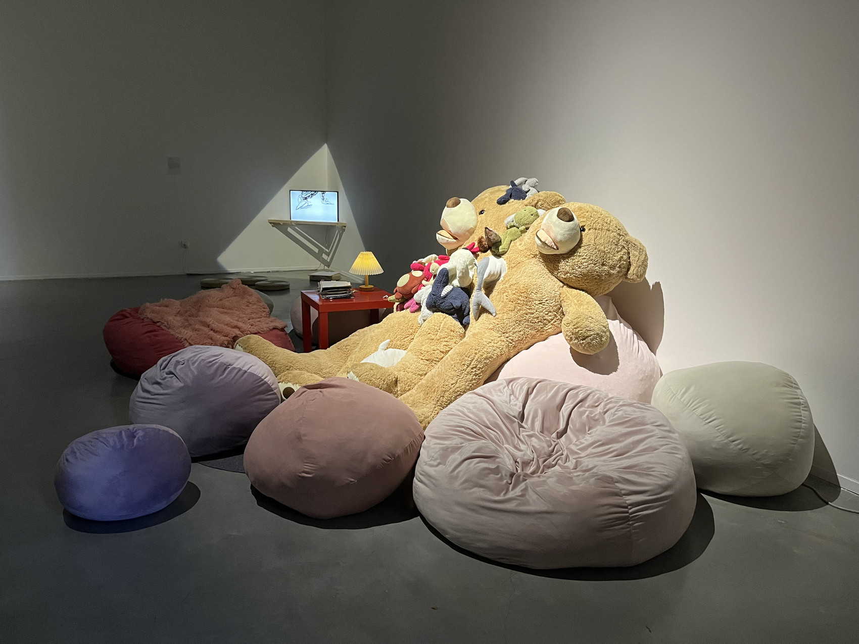 四川大学美术馆展厅一角,显示屏上循环播放着艺术家陈镪、蒲粤梅制作的9分钟动画短片《穿过记忆》。