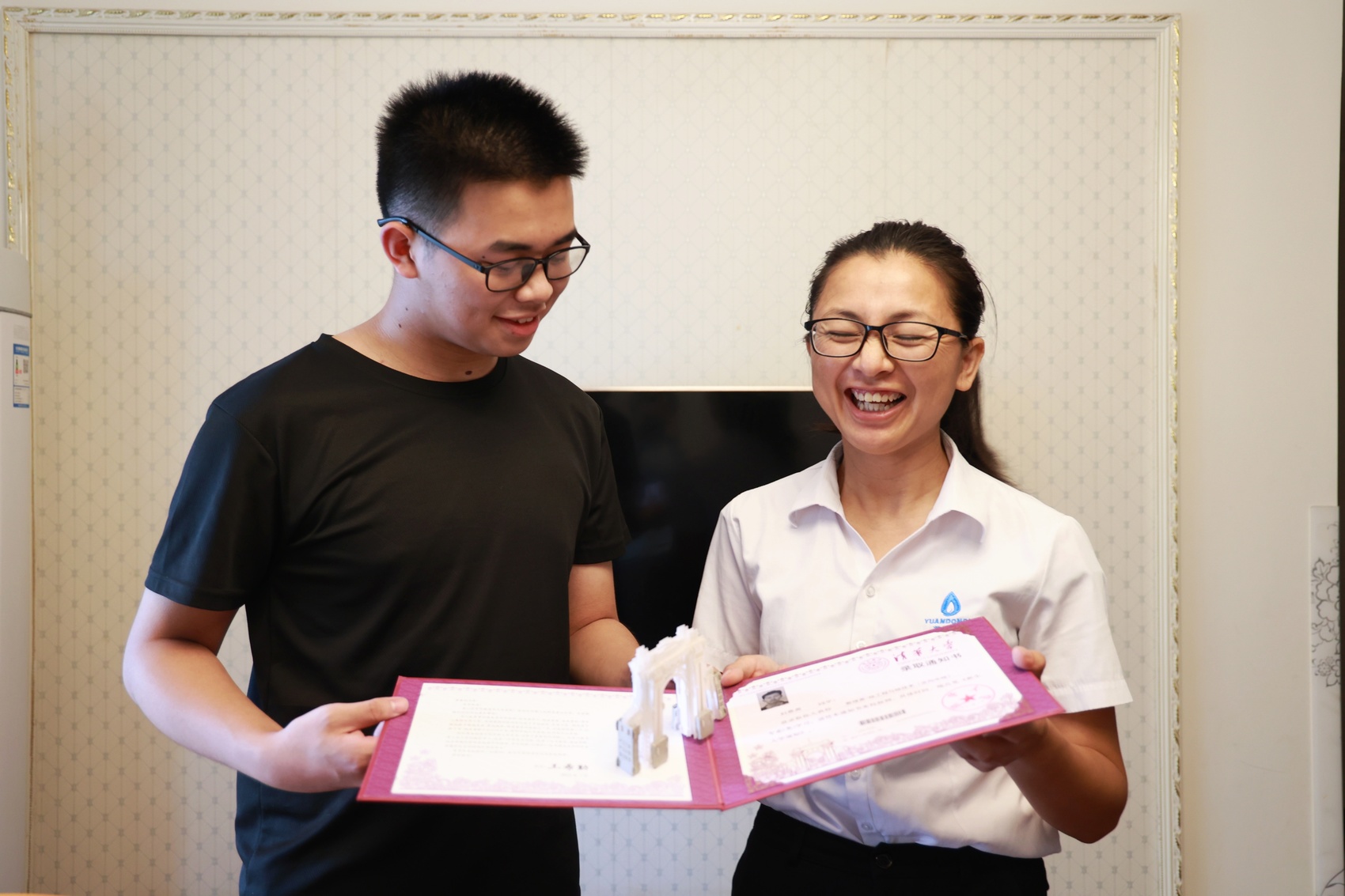 虽然已经提前知晓被清华大学录取,但看到录取通知书上数理类核工程与核技术专业的那一刻,刘恩尧及其母亲仍难掩激动兴奋之情。