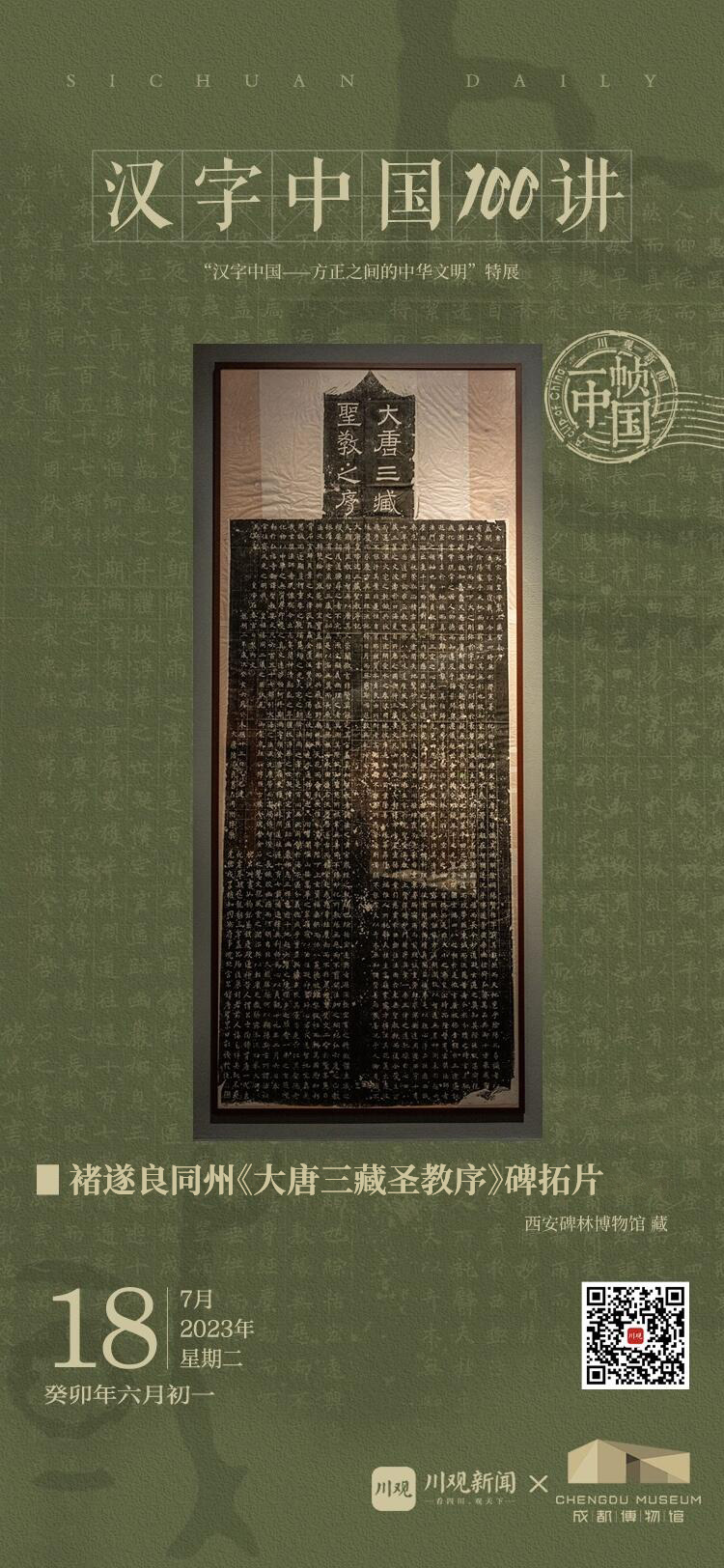 今天为大家介绍的是唐初楷书代表作——褚遂良同州《大唐三藏圣教序》碑拓片。褚遂良为唐代政治家、书法家,博学多才,精通文史,其书法汲取欧(欧阳询)、虞(虞世南)之所长,探索出刚柔相济的楷书新风。同州《大唐三藏圣教序》碑刻于唐龙朔三年(公元663年),碑文内容为贞观二十二年(公元648年)唐太宗为玄奘新译佛家经典御制的《大唐三藏圣教序》和时任太子李治所作的《大唐皇帝述三藏圣教序记》。