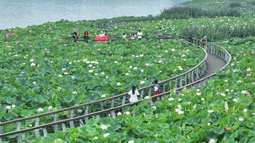 在四川,很多乡村还将种荷作为重要产业,开展农旅融合,不仅让游客在炎炎夏日中感受水清岸绿、荷叶田田的生态美景,也给当地百姓增加了致富的途径。