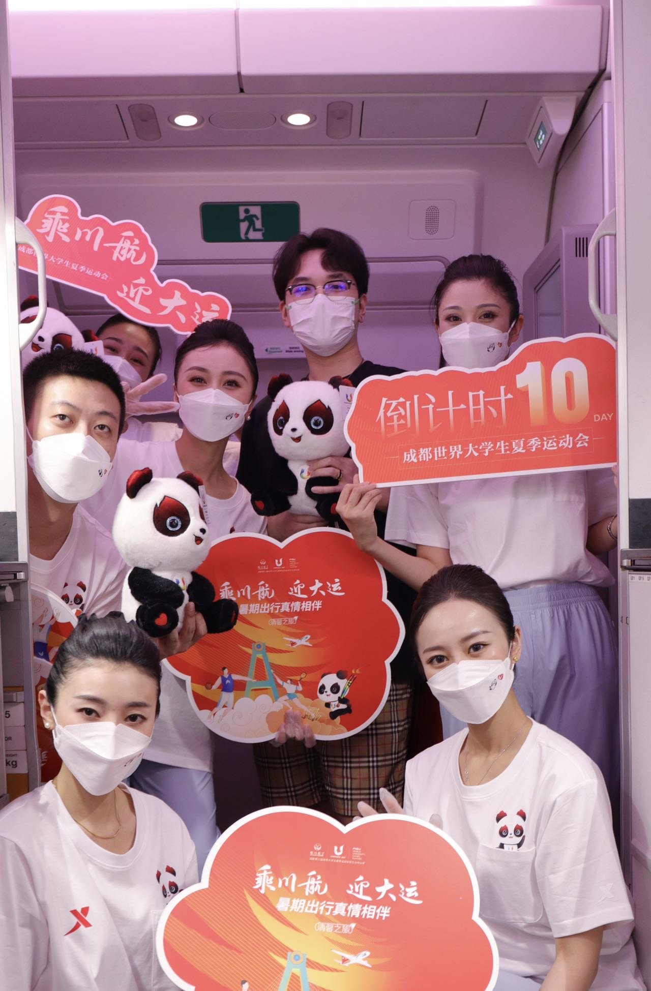 7月18日,川航、特步作为成都大运会官方合作伙伴,联合在当日起飞的3U8886北京首都-成都双流航班开展了“乘川航 迎大运 梦想正当燃”主题活动。