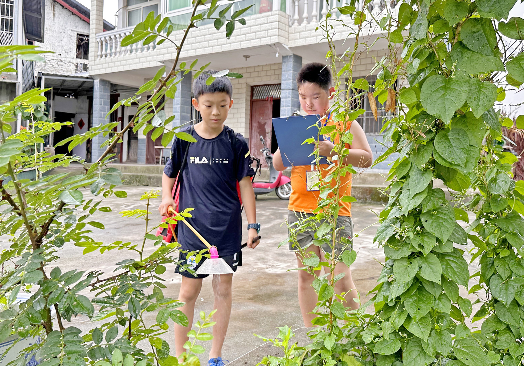 “爷爷,您背上背的是什么啊?怎么像我们玩的大型水枪一样。” 看见67岁的村民李安民在地里忙活,来自江苏太仓实验小学四年级学生陆梓鑫十分好奇。
