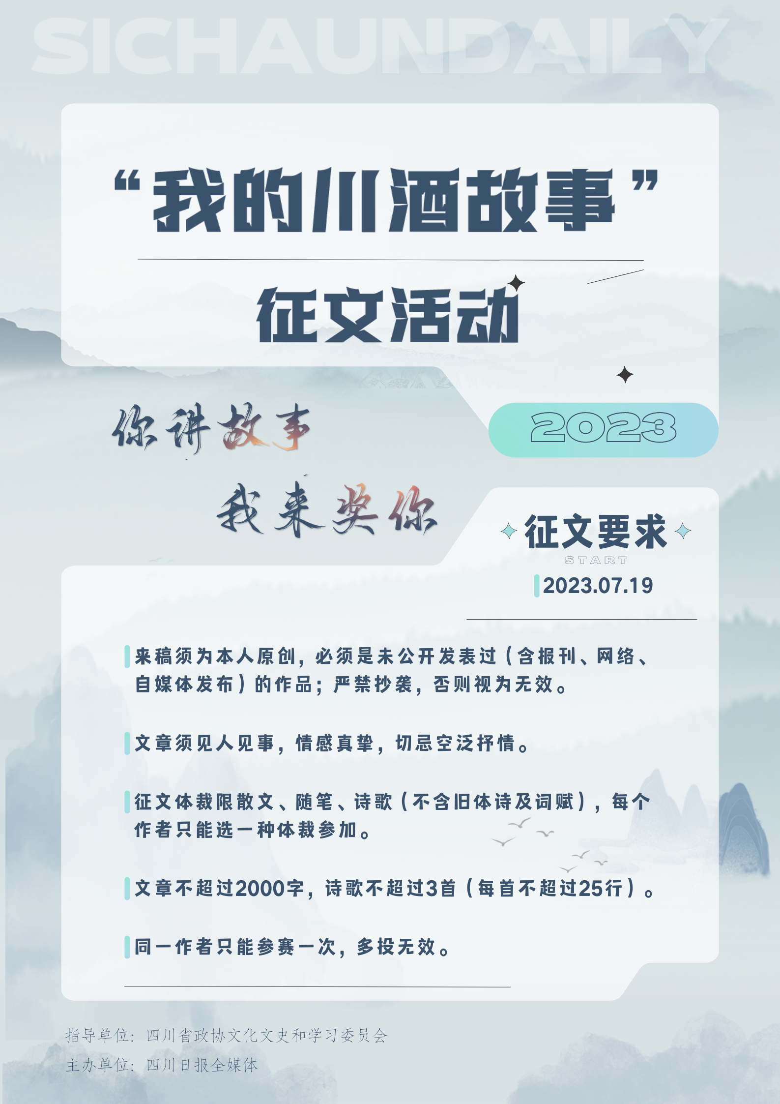 在投稿方式上,本次征文不接受纸质和电子邮件投稿,参赛请下载“川观新闻”APP,点击右下角“我的”,在“活动中心”进入“我的川酒故事”征文页面,按要求进行填写和投稿。