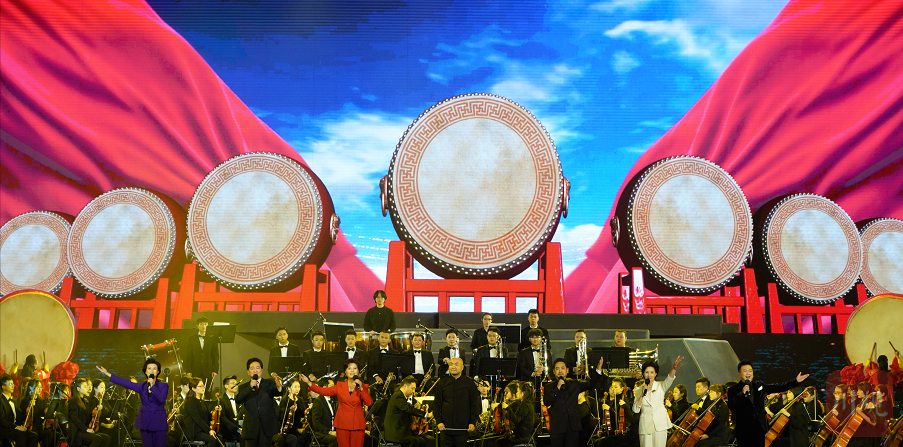 11月1日晚20:10分,第六届中国诗歌节开幕式文艺演出正式开演,诗朗诵与交响乐《正逢擂鼓进击时》作为开场节目亮相。