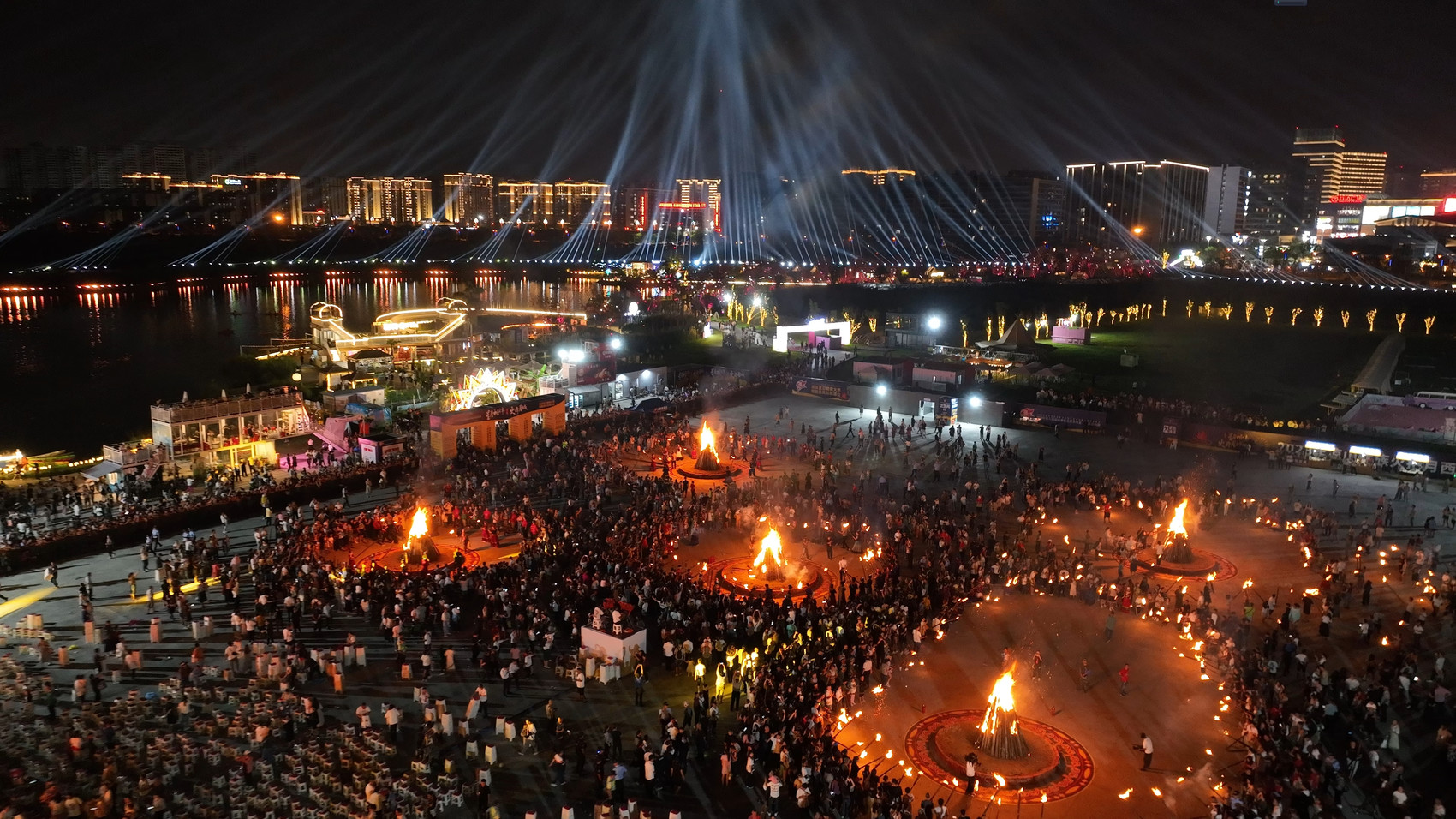 绚丽的灯光将西昌城点缀得恰到好处,节日的氛围浓郁。市民、游客齐聚一堂,手拉手围绕篝火跳达体舞狂欢,体验不一样的民族风情。