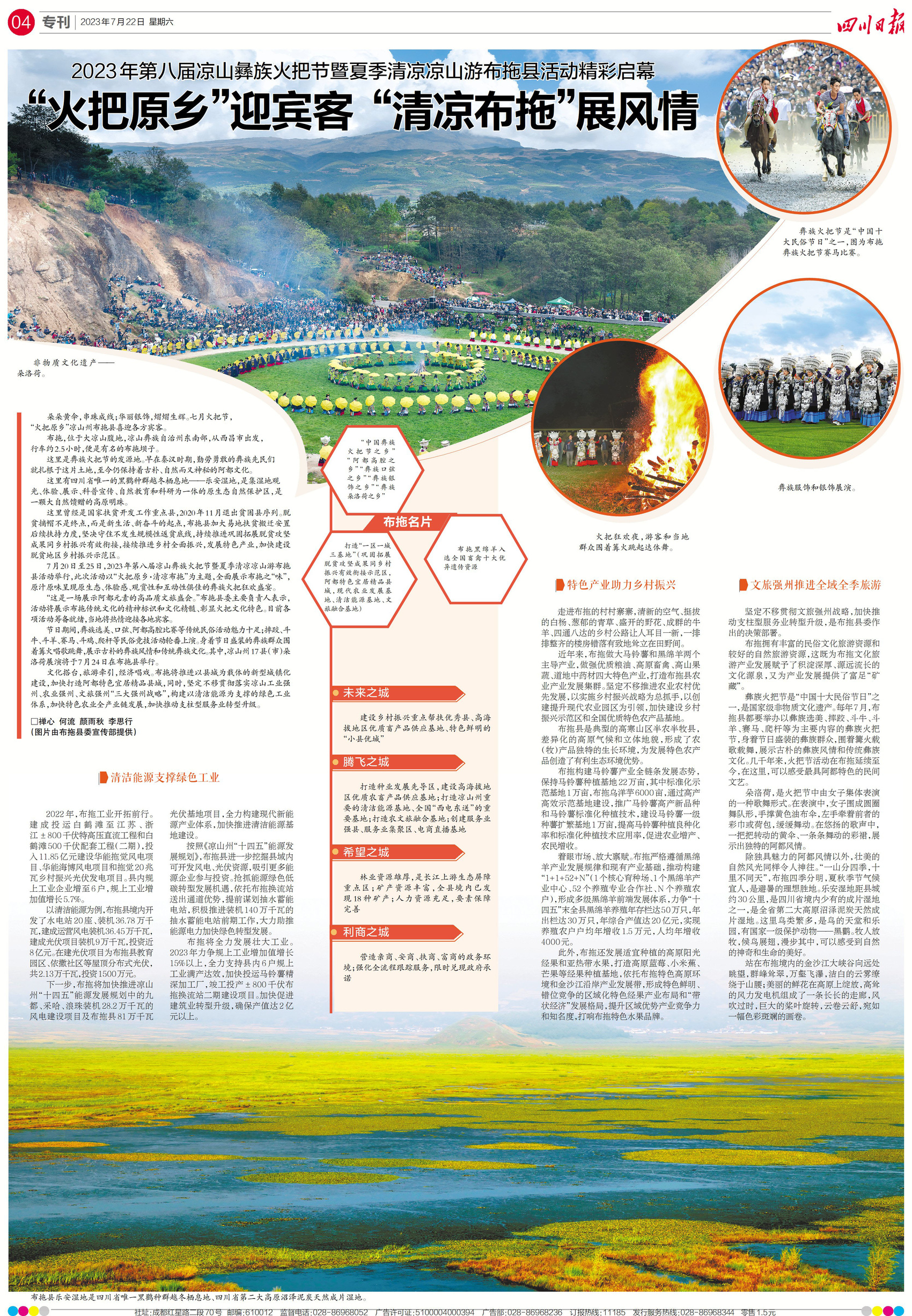 7月22日四川日报要闻版整版文章《“火把原乡”迎宾客 “清凉布拖”展风情》。