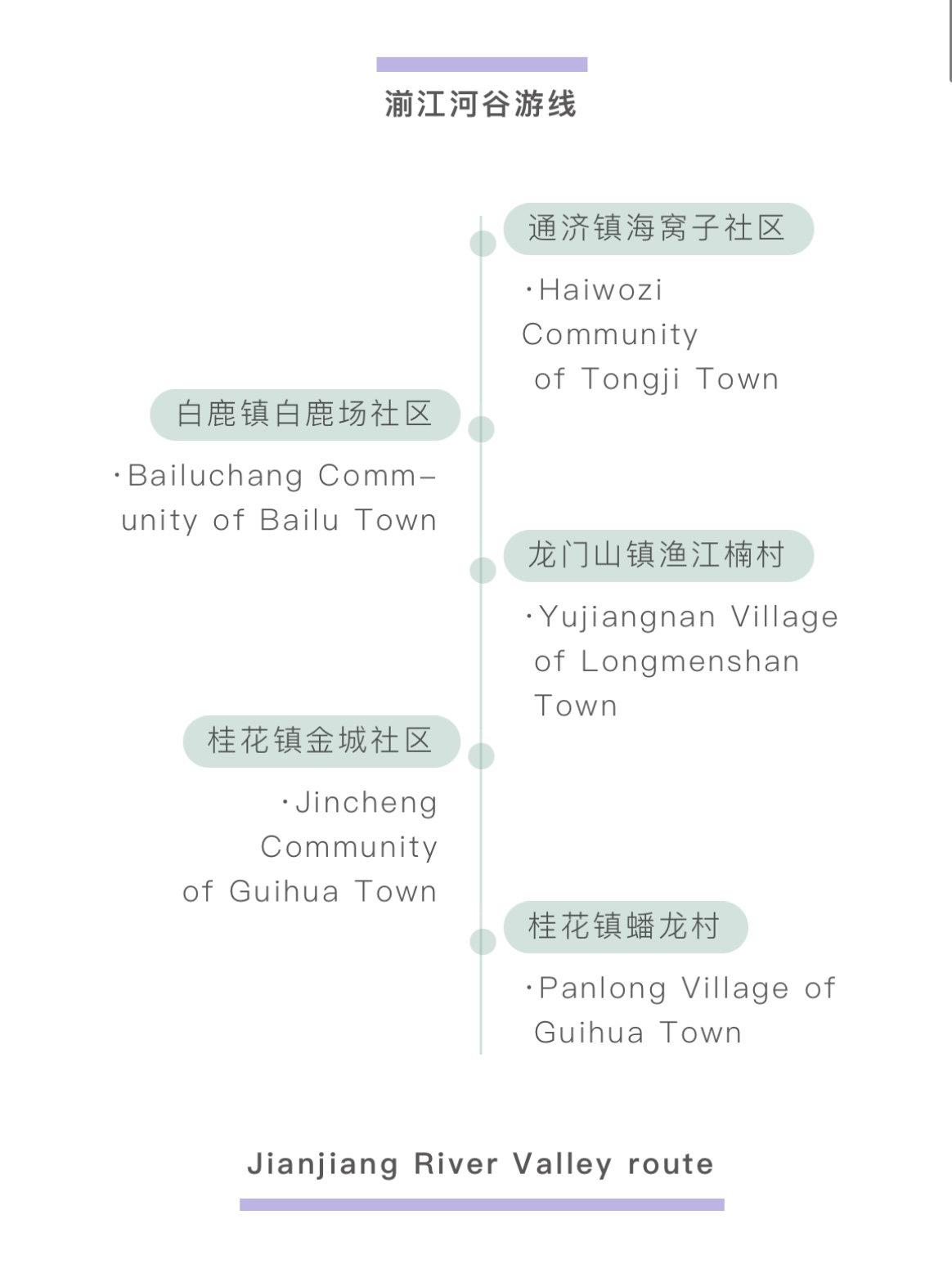 全长1.314公里的锦江区“1.314”爱情专线,连接成都太古里、东门码头、合江亭、九眼桥等标志性地点,营造漫步式、社交化的空间形态;老成都西门街巷游线既有历史内涵、文化故事,也有商业氛围、美食美景;在彭州市的湔江河谷社区游线,阳光、河滩、山谷和风,带你走进一副山水田园画卷……