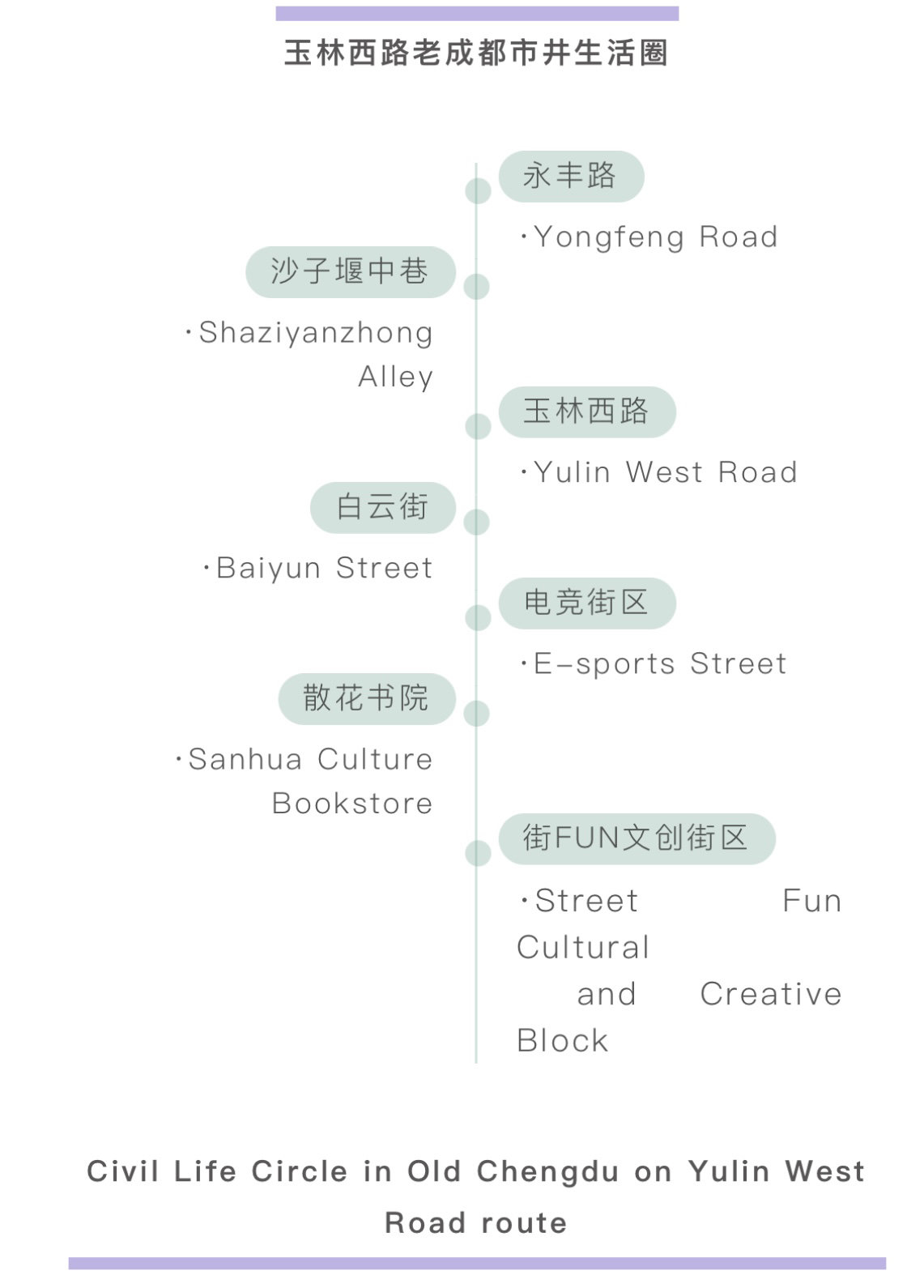 以玉林西路老成都特色文化为载体,围绕着以地域文化为纽带引发情感共鸣,以街景创新带来感官体验,结合玉林西路地标特色,打造了一系列的场景,达到片区特色与整体风格相得益彰的视觉效果。
