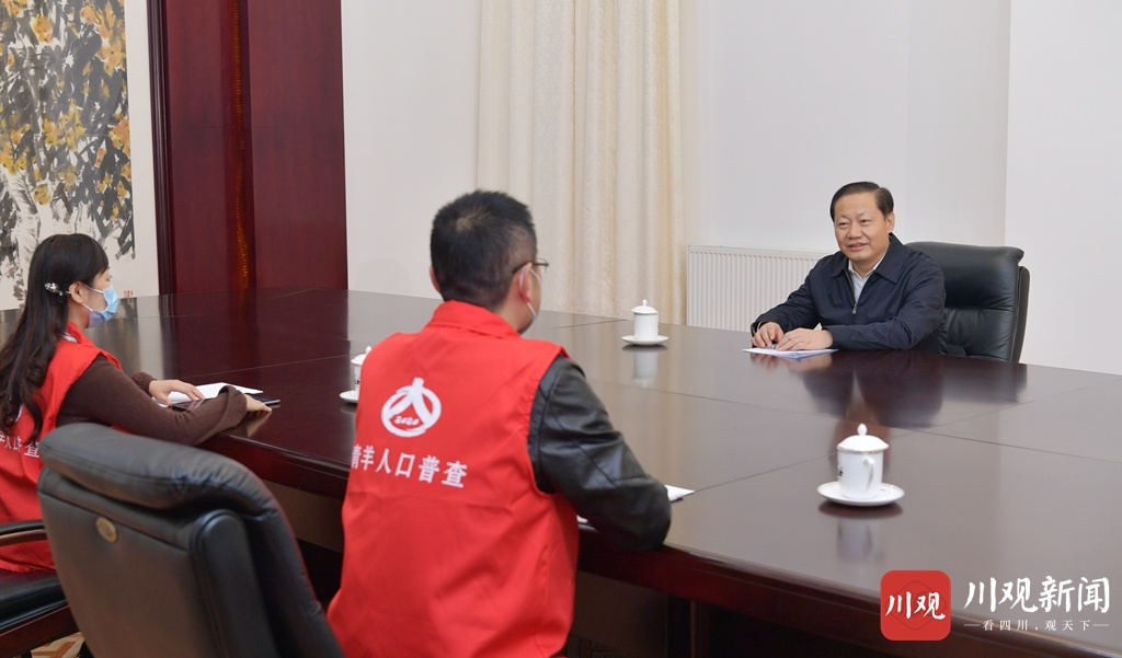 彭清华在省委机关热情接待了成都市青羊区人口普查工作人员,认真听取并回答普查人员询问,按照人口普查要求逐项登记有关信息。仔细核对登记内容后,彭清华在手持移动采集设备上郑重签名确认。