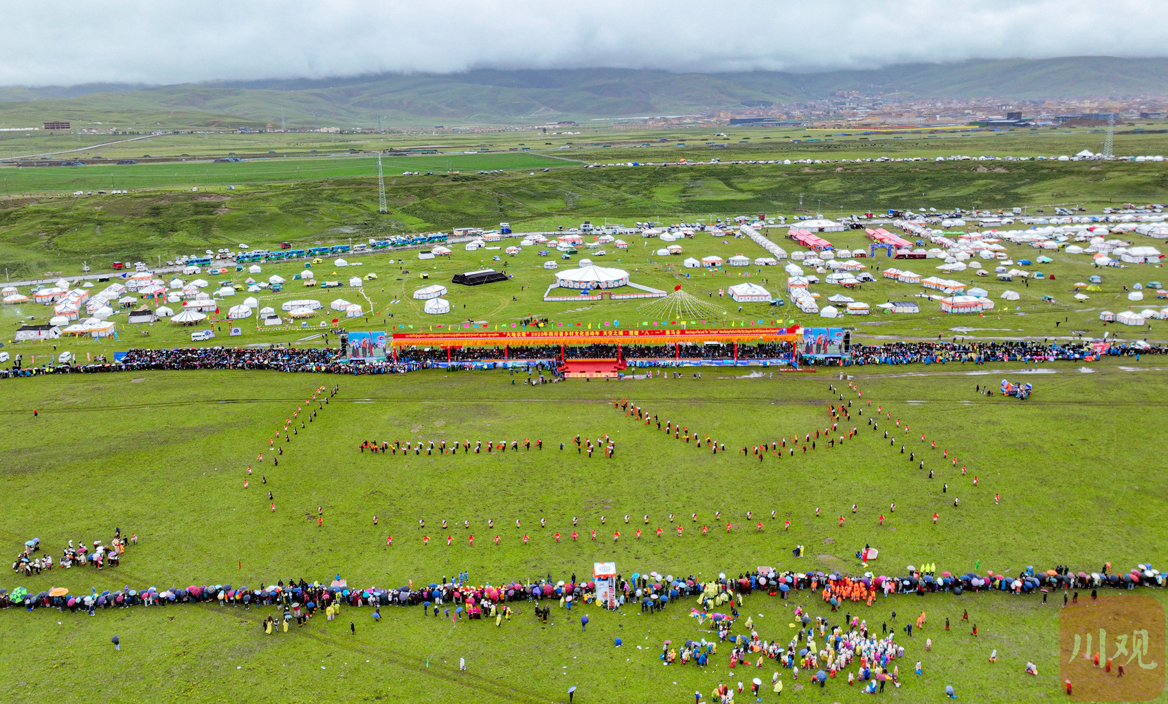 随后进行的文艺表演环节,理塘藏戏舞蹈《扎西雪巴》、马背上的歌谣《马背理塘》、百人弹唱《再唱山歌给党听》、由丁真珍珠与20名小朋友合唱的歌曲《一首微笑的歌》、600人大型理塘锅庄舞《阿香罗罗》以及500人的赛马舞等精彩的文艺节目相继出场。