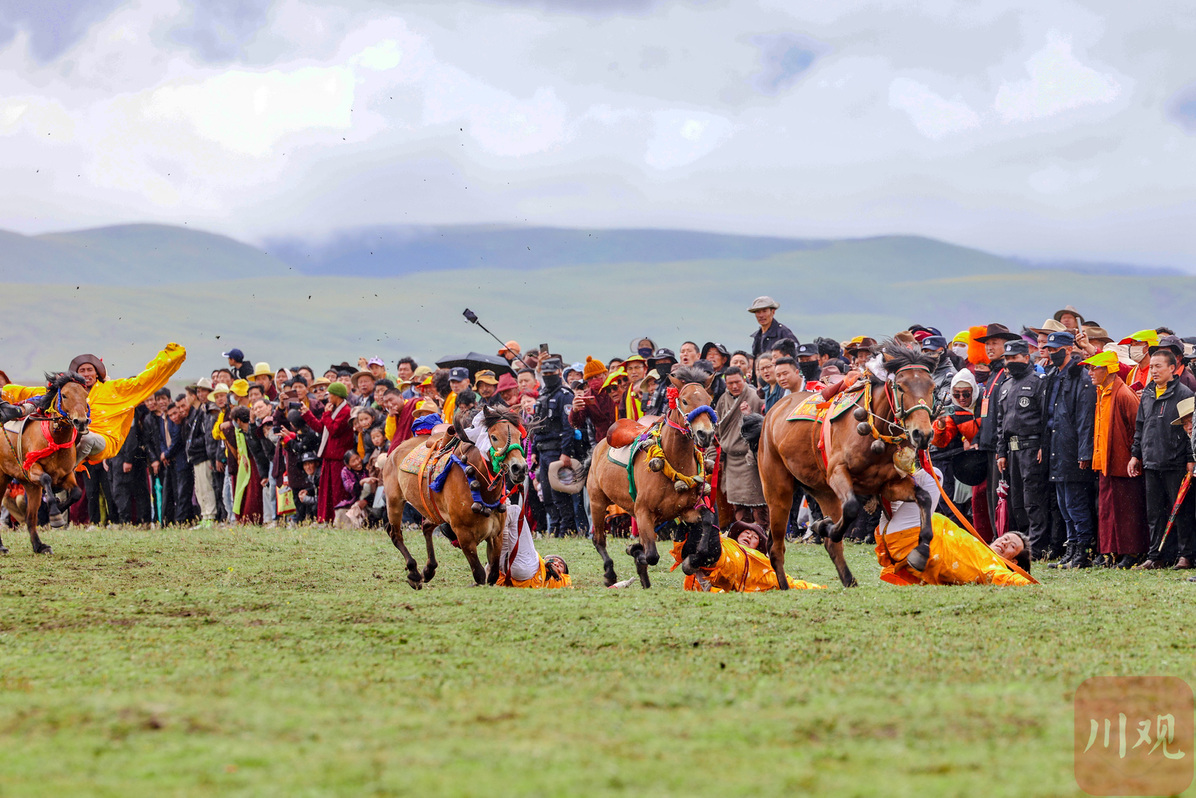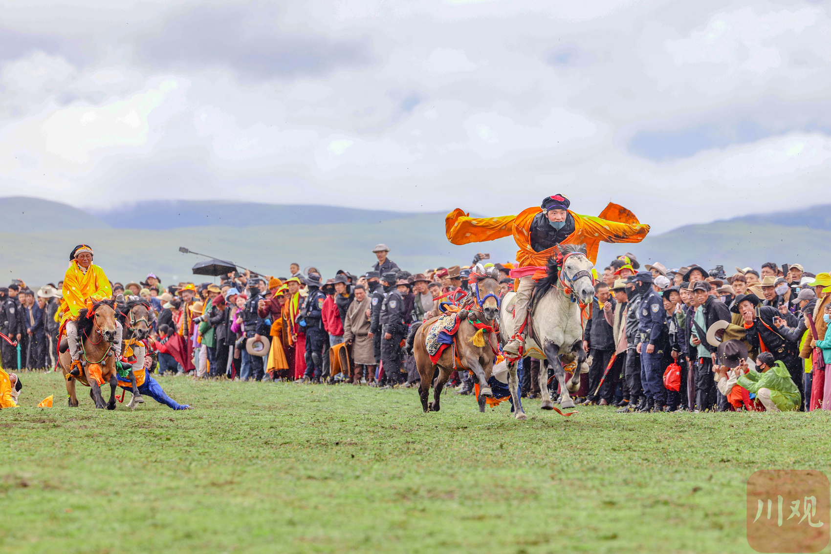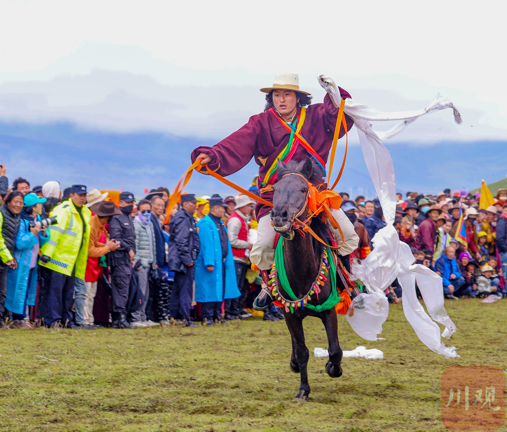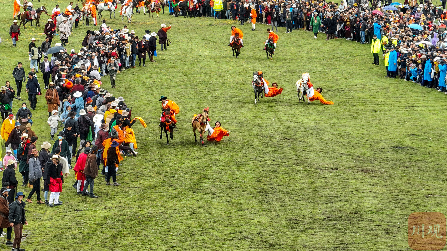 开幕式现场还举办了马术表演。马背倒立、马肚藏身、俯身拾哈达、飞枪射击,还有堪称“理塘一绝”的“嘎玖”……一个个精彩的瞬间让观众心潮澎湃、热血沸腾。
