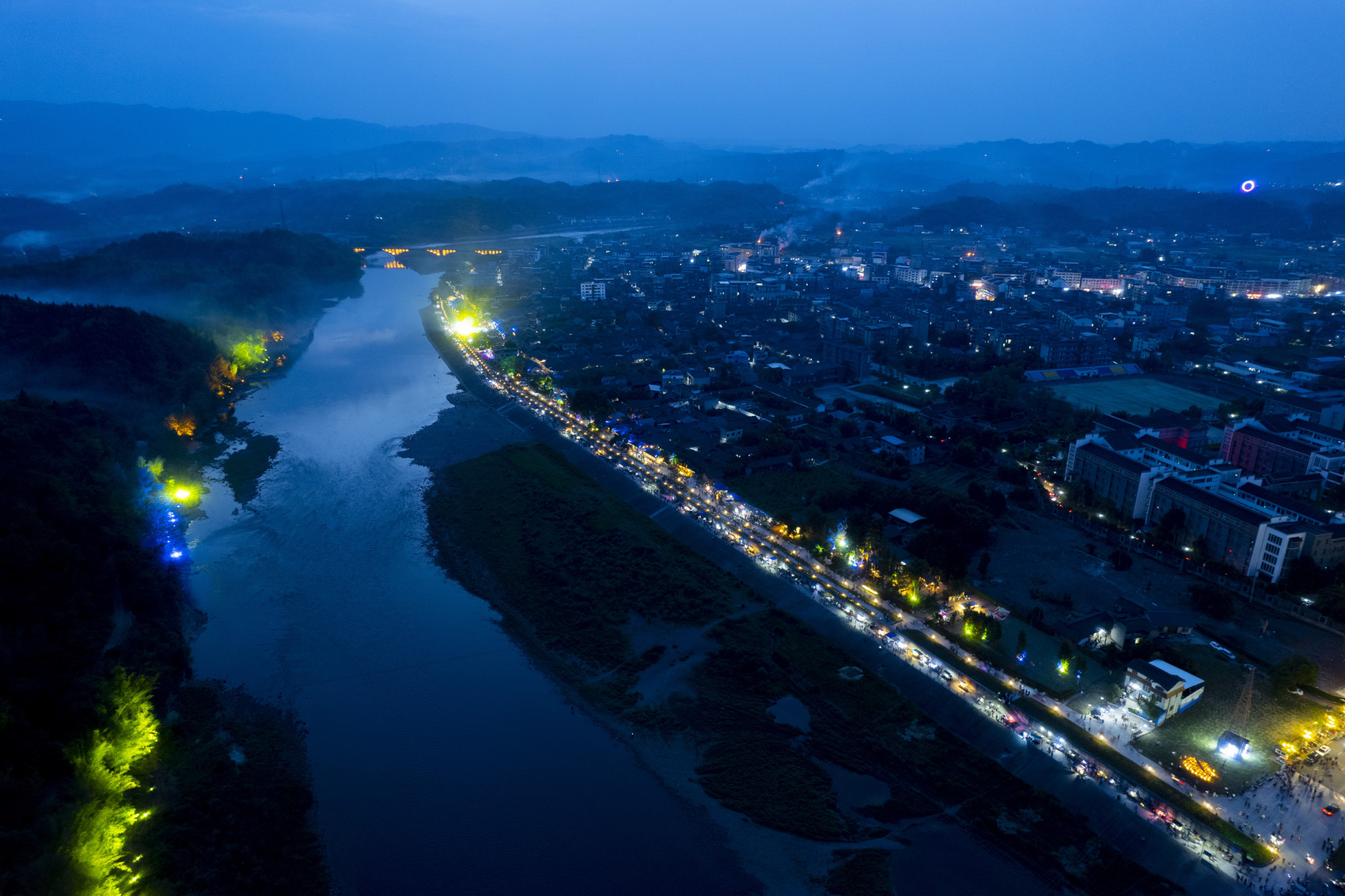 傍晚,华灯初上的清溪古镇,多了几分暑气蒸腾的氤氲。夜色中,一条沿着滨河步道向外延伸的灯光带,将波光、古建、夜市、步道缀连起来。市民游客或临河撸串,或漫游夜市,热闹的夜间经济为古镇带来一番别样的烟火气。