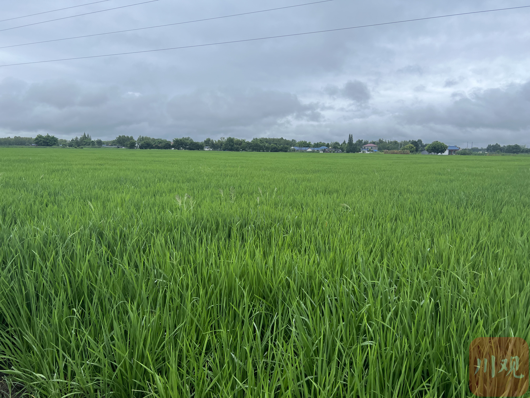 下午2点,风力稍减,雨势渐弱。风雨后,田里的水稻如何?四川农业大学农学院教授、水稻栽培专家任万军带着学生,急切地来到位于成都市大邑县安仁镇的大邑县现代农业园区试验基地。车在一片稻田边停稳,眼前是望不到边的滚滚绿浪,风雨后更显茁壮。
