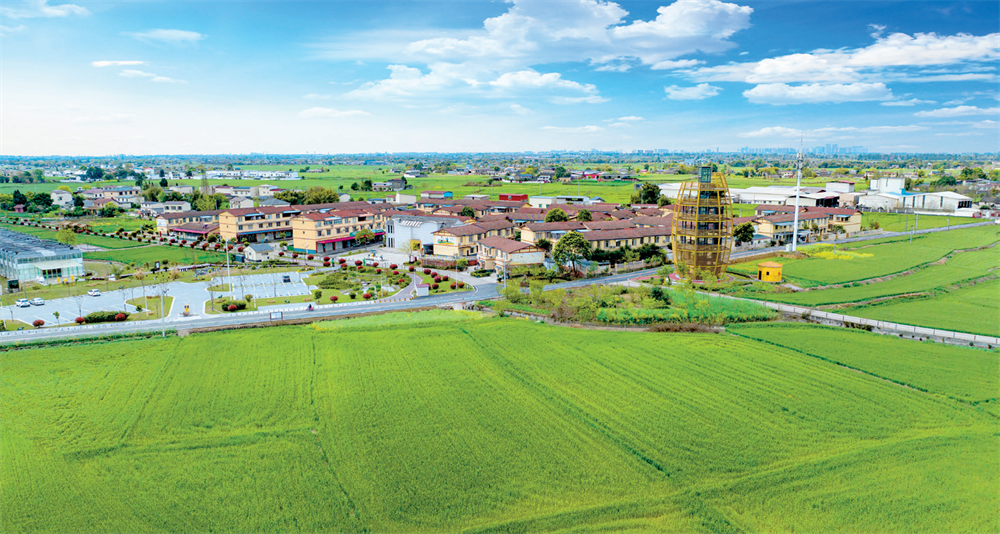 在中江金穗源粮食专业合作社驻地外,只见上千亩田块统一规划、方正整齐,白鹭时而穿梭稻田觅食、时而振翅高飞。