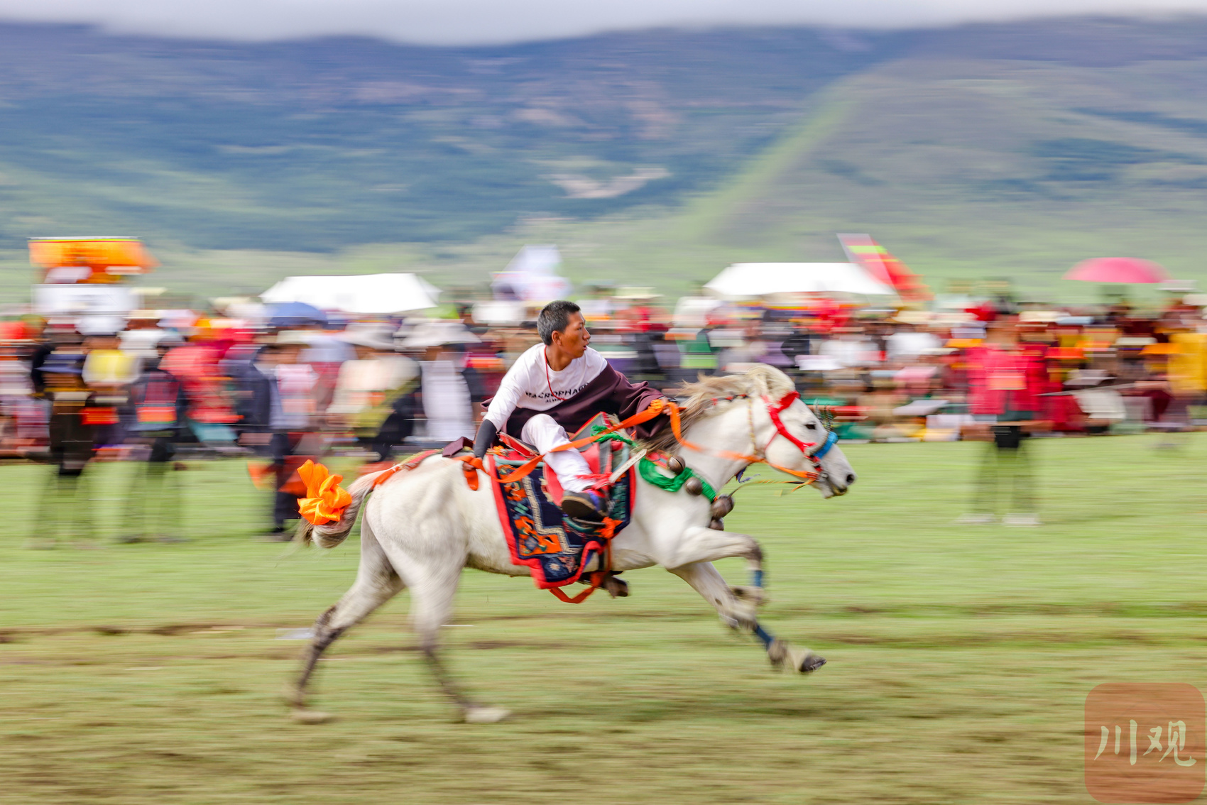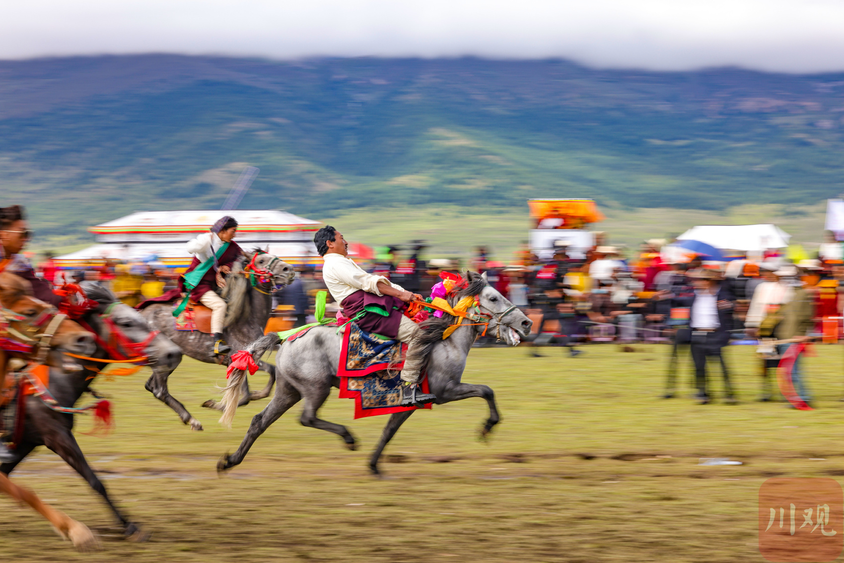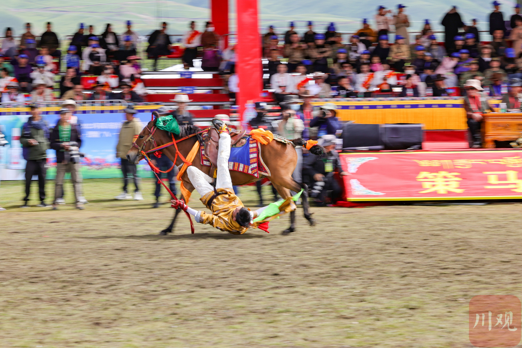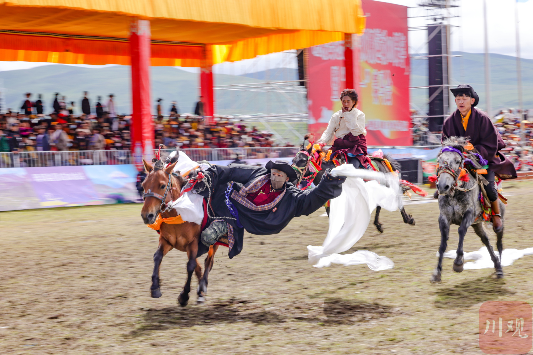 马背倒立、马肚藏身、俯身拾哈达、飞枪射击,还有“理塘一绝”之称的“嘎玖”……7月25日,马背的理塘,赛马的故乡,精彩的马术表演接踵而至。