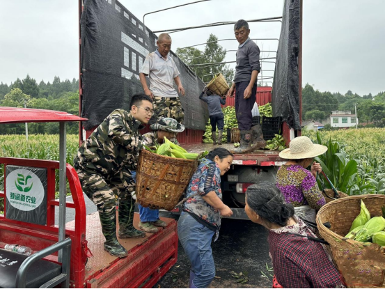 眉山天府新区龙马镇一家由退役军人创办的农业企业到地里收苞谷。