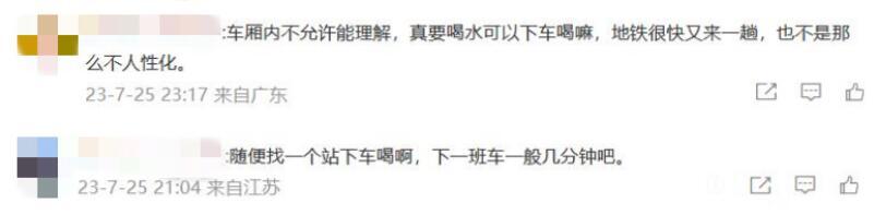 有网友表示,在地铁喝水应该被允许。