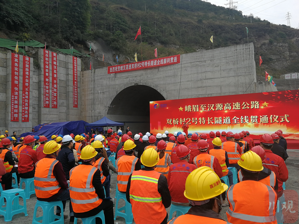 10月31日,峨汉高速公路双桥村2号隧道实现双幅贯通。双桥村2号隧道是峨汉高速峨眉至峨边48公里通车段(以下简称通车段)的控制性工程之一,也是连接峨眉和峨边两地的重要特长隧道。这标志着峨汉高速通车段,力争2020年底通车的目标任务取得了重大进展。