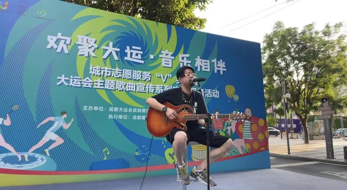 当天,城市志愿服务“V”笑行动——大运会主题歌曲宣传系列志愿服务活动热情开启,观众周末在成都音乐坊的音乐大道、成都城市音乐厅黑胶广场,能听到不同的歌手演唱歌曲。成都大运会期间,这座努力建设国际音乐之都的城市,邀请全世界的音乐人创作成都大运会主题推广曲,用各种各样的音乐、戏剧演出和跨界活动,为成都增添了浪漫和充满活力的气氛,为运动健儿呐喊加油。
