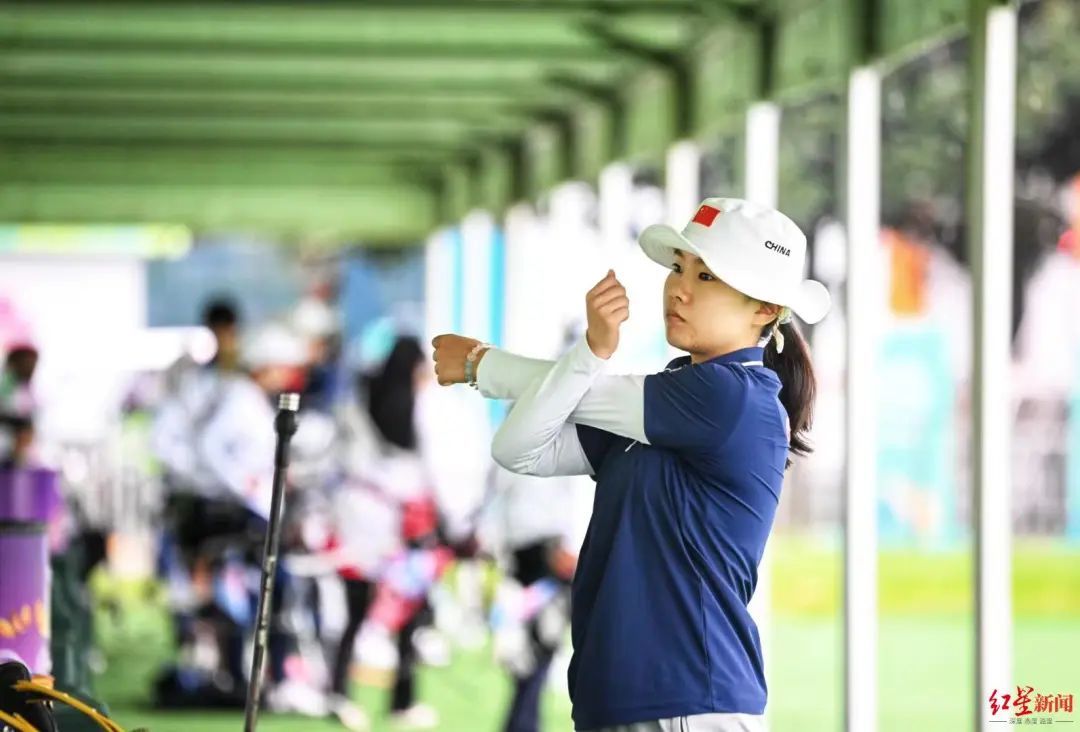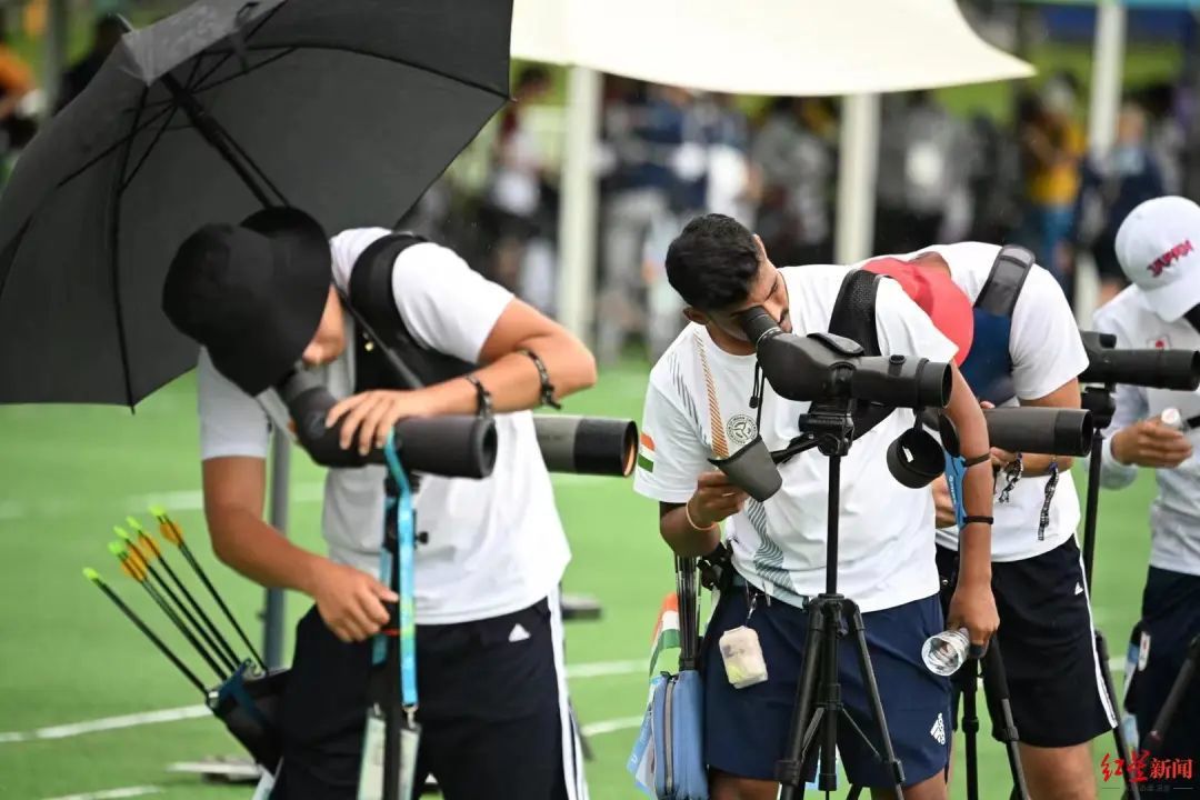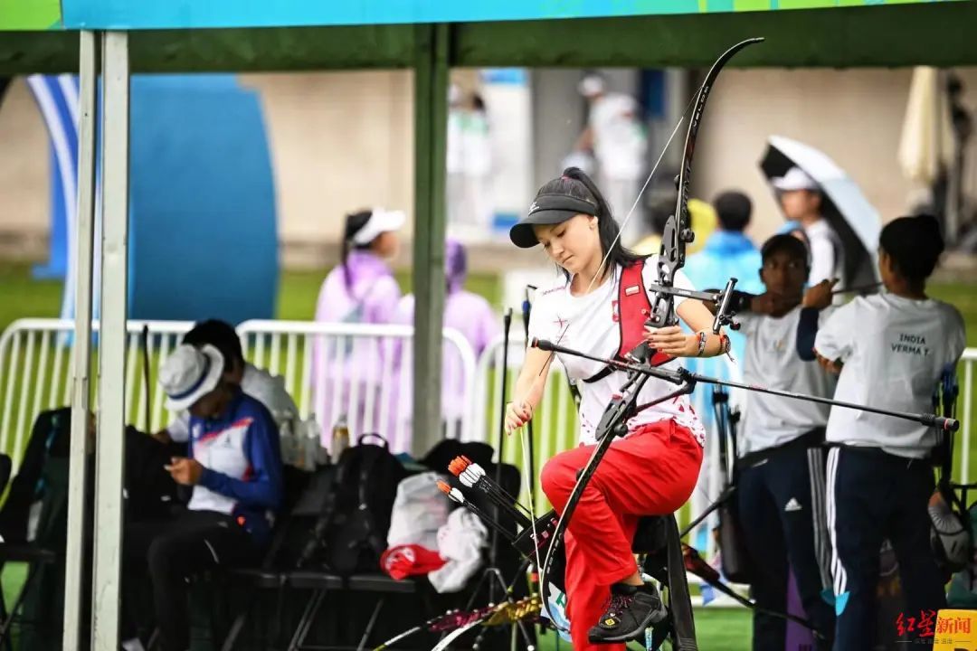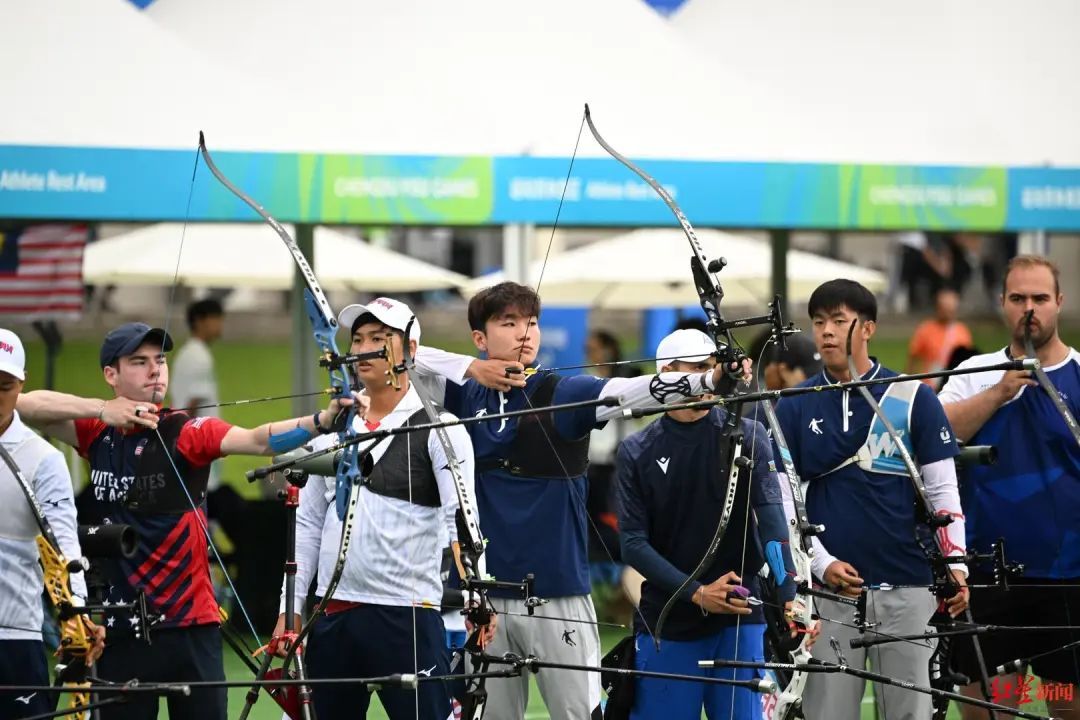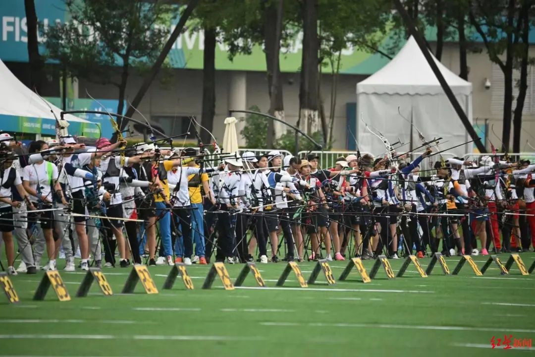 成都大运会射箭比赛反曲弓资格赛,选手正在练习
