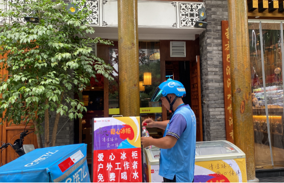 “晓秧锅西外店所处位置人流量比较大,往来的快递员、环卫工人都比较多,他们都非常辛苦;我们一直想在炎炎夏日为他们做点什么,‘爱心冰柜’公益活动与我们的想法不谋而合。”在包晓虎眼中,参加这场公益活动,也是企业回报社会的一种方式。