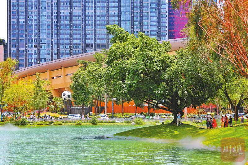 成都市摩诃池公园秀色引来市民游览。华小峰 摄