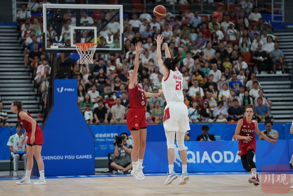 7月30日下午,成都大运会篮球项目比赛继续进行,在凤凰山体育公园篮球馆进行的女子预赛D组一场较量中,中国队以72∶49战胜波兰队,迎来本届大运会两连胜。