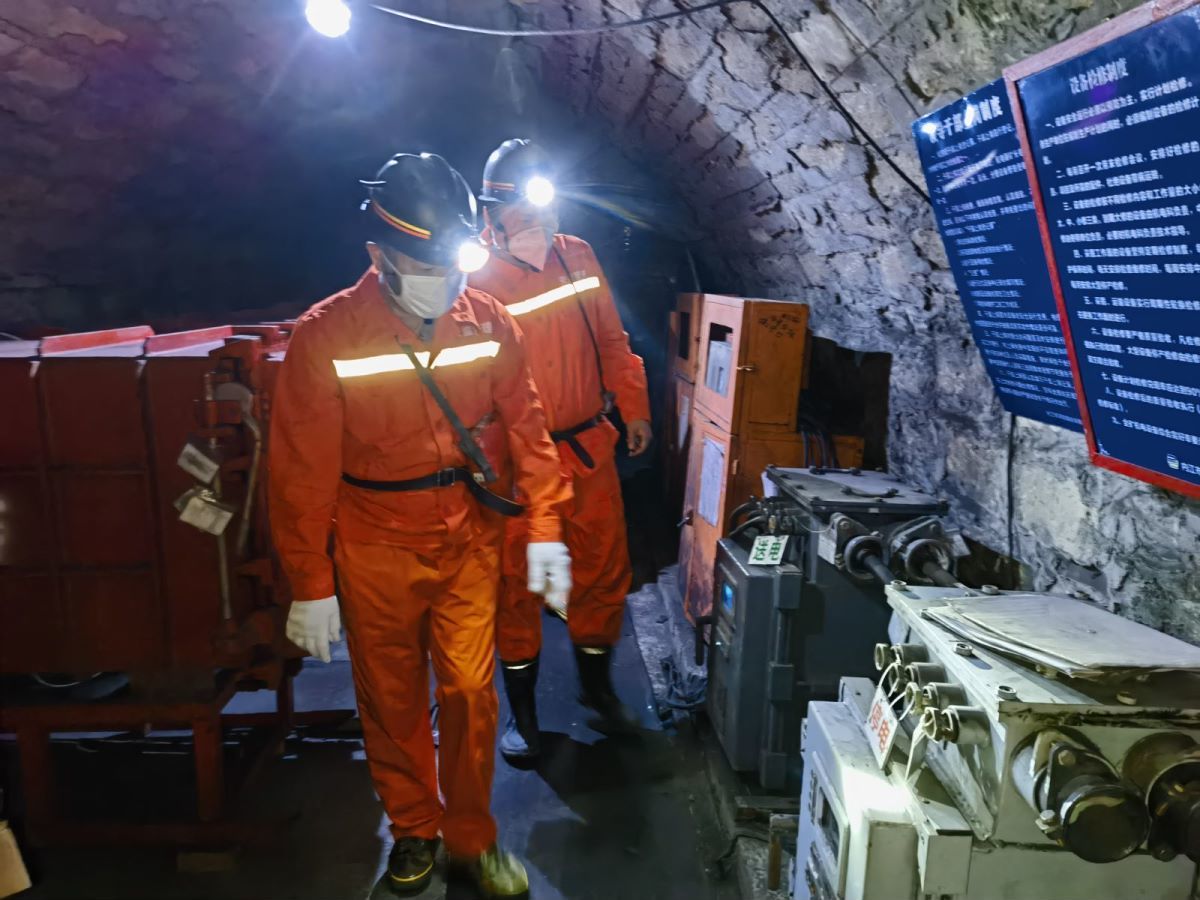 赵军(前)带队在煤矿下开展安全检查。