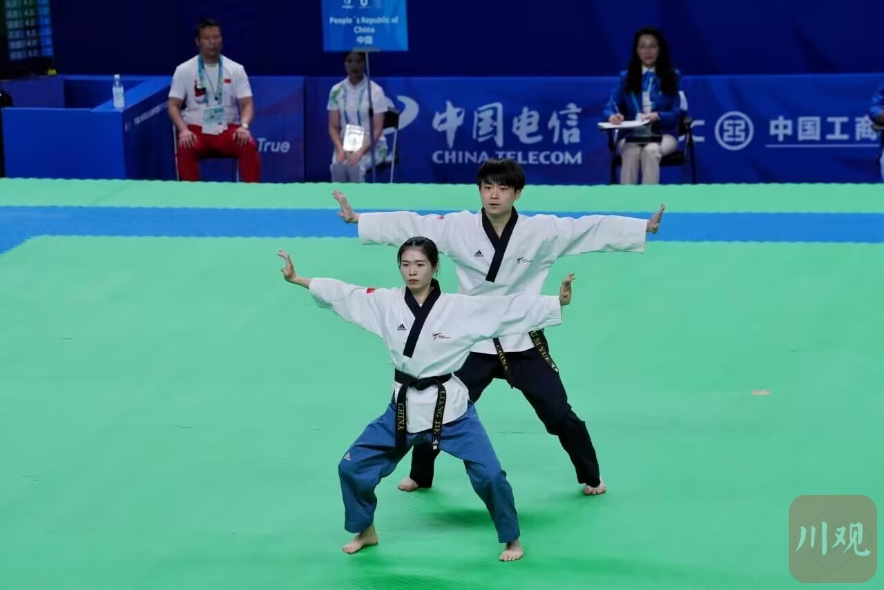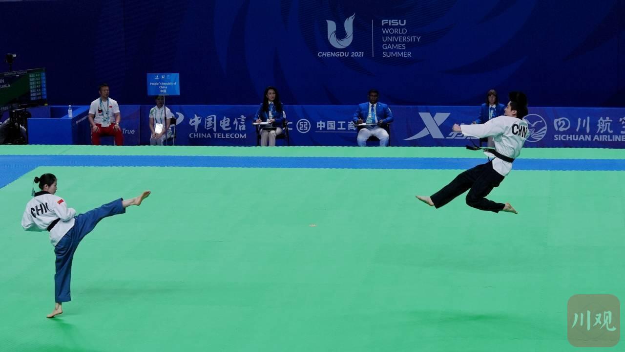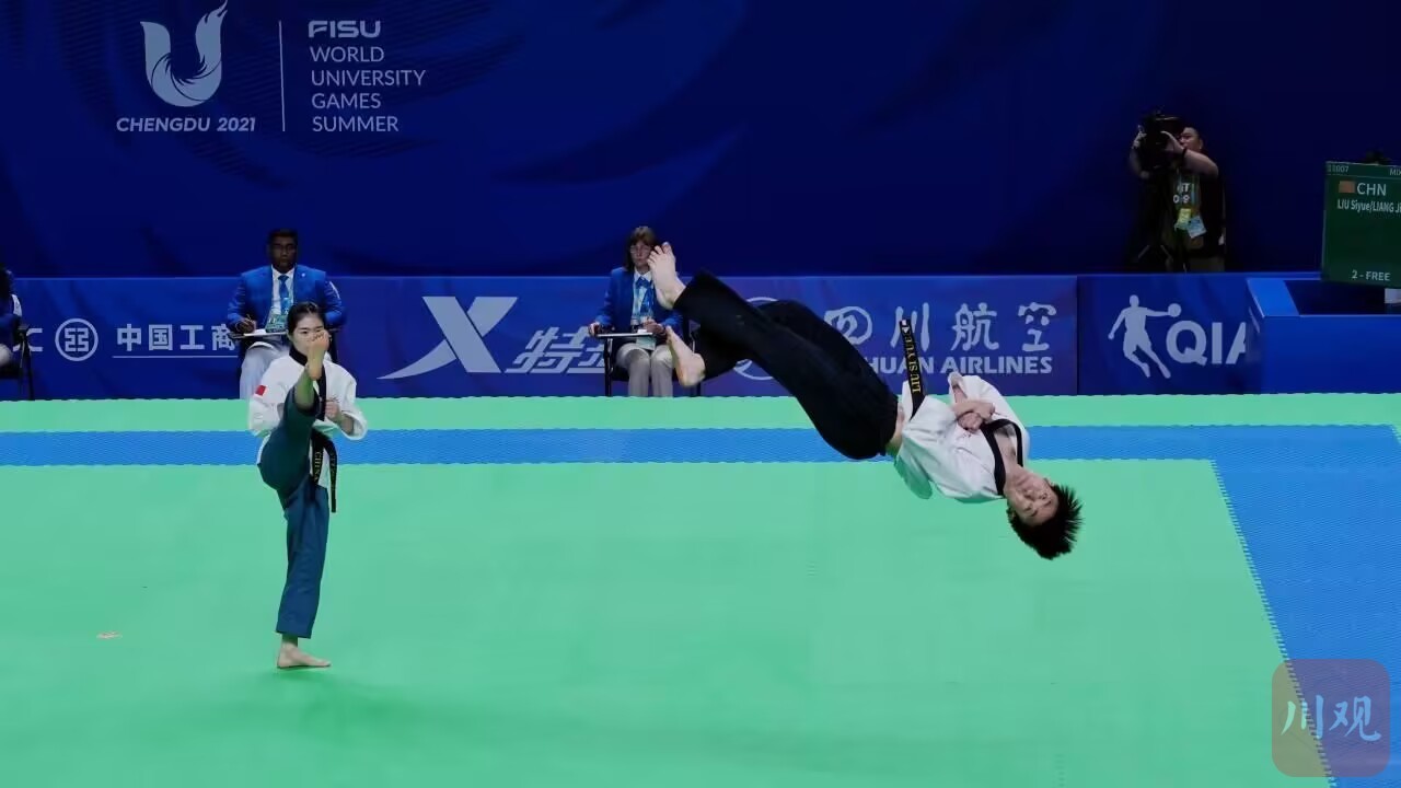 7月30日,成都大运会跆拳道混合双人品势决赛上,刘思玥和梁婕以总分7.240夺得金牌。这也是成都大运会上,中国队在该项目上的首枚金牌。