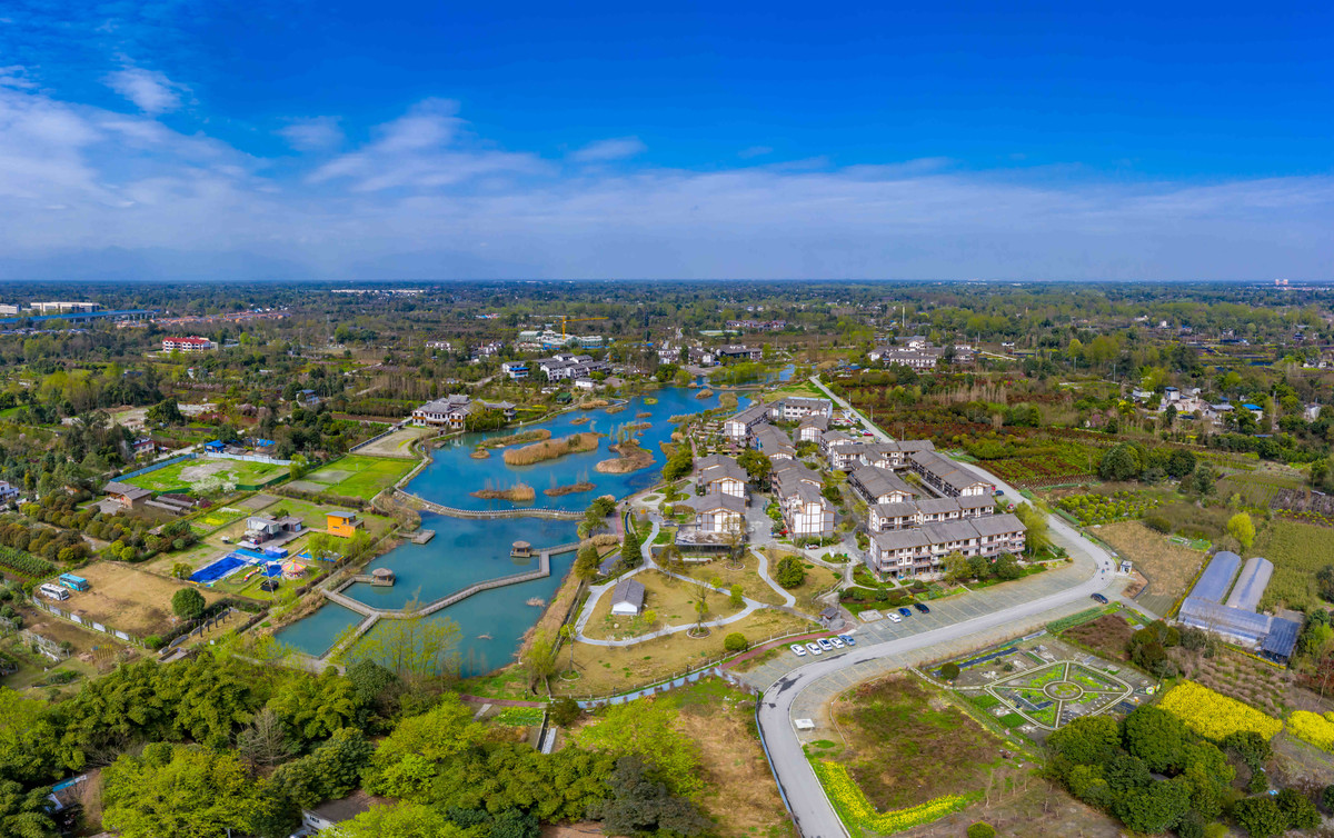 如今,幸福村的湿地已经拥有174亩的水域面积,村子的5个旅游组团均通过水系相连通,已经成为成都近郊乡村游的网红打卡地。走在村子里,望着青瓦白墙、林盘掩映、小桥流水,如同欣赏一幅"岷江水润、茂林修竹、美田弥望、蜀风雅韵"的川西田园画卷。