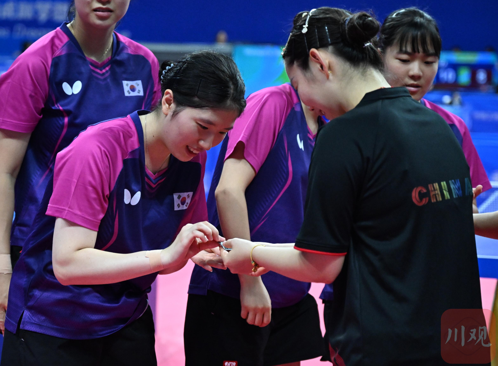 7月31日,中国女队在高新体育中心体育馆以3:0击败韩国队,顺利晋级成都世界大学生运动会乒乓球女子团体半决赛,她们将于当日晚上争夺决赛名额。