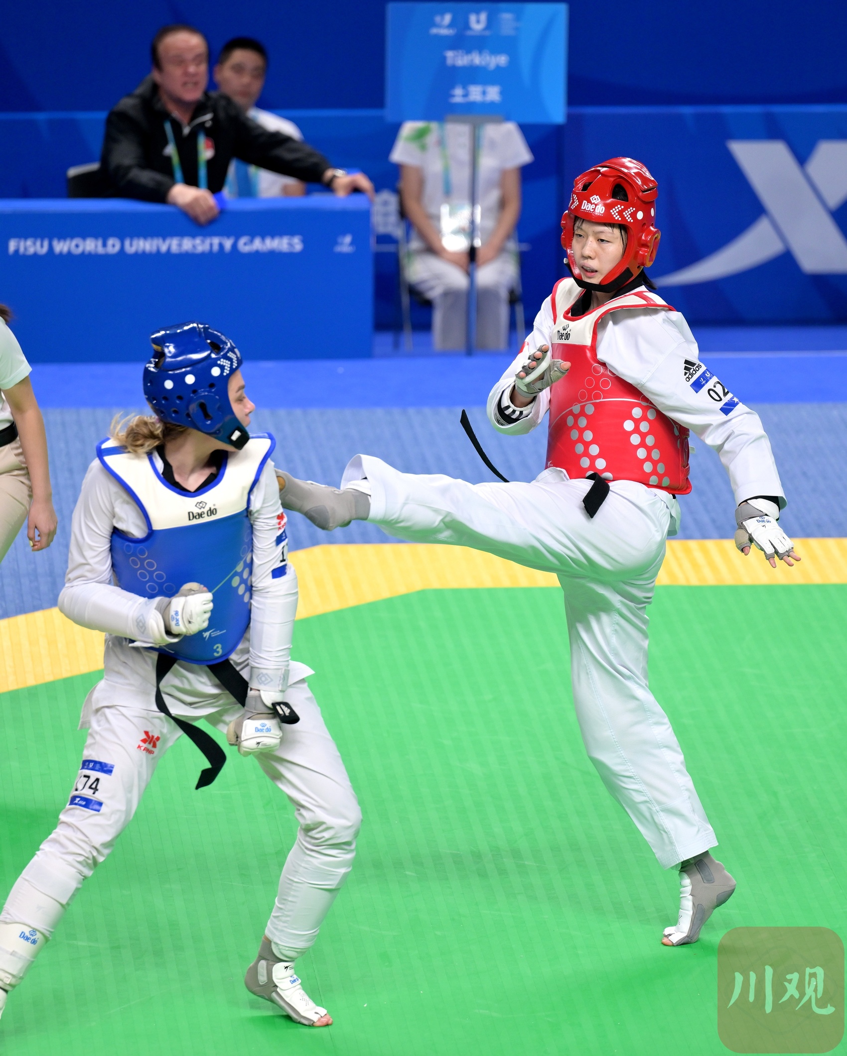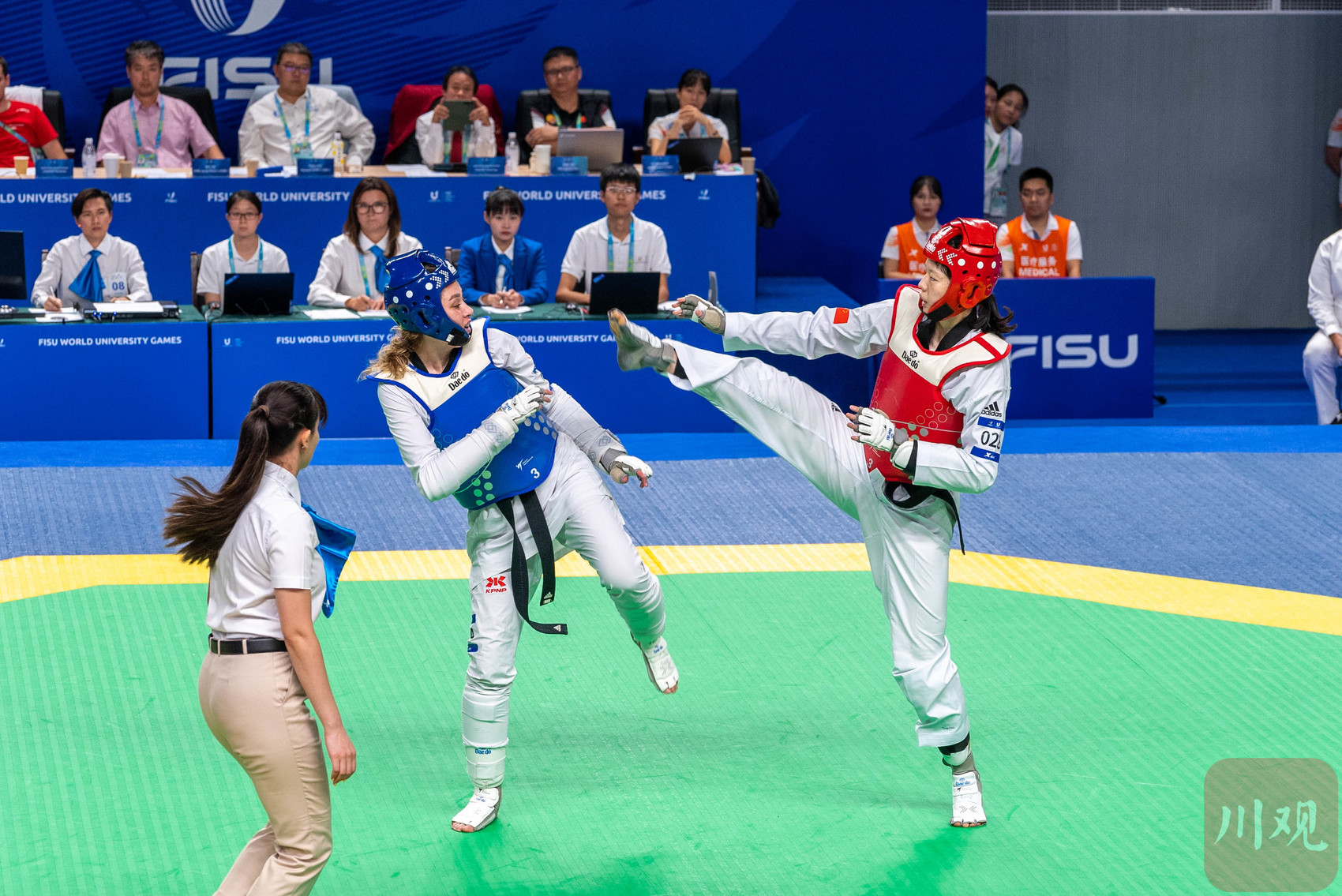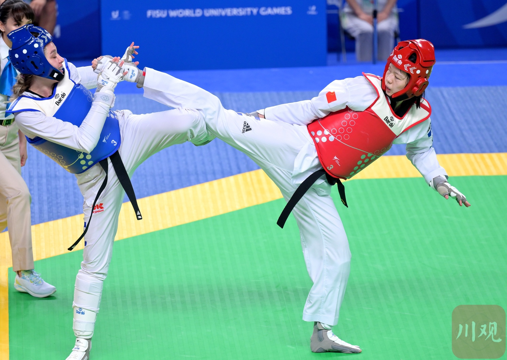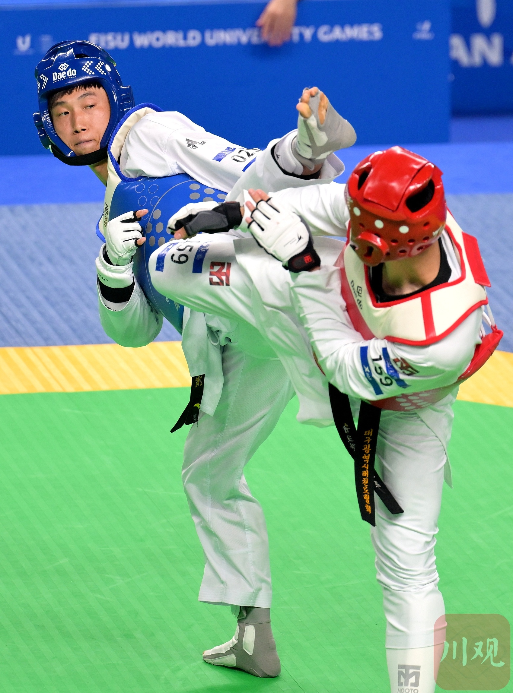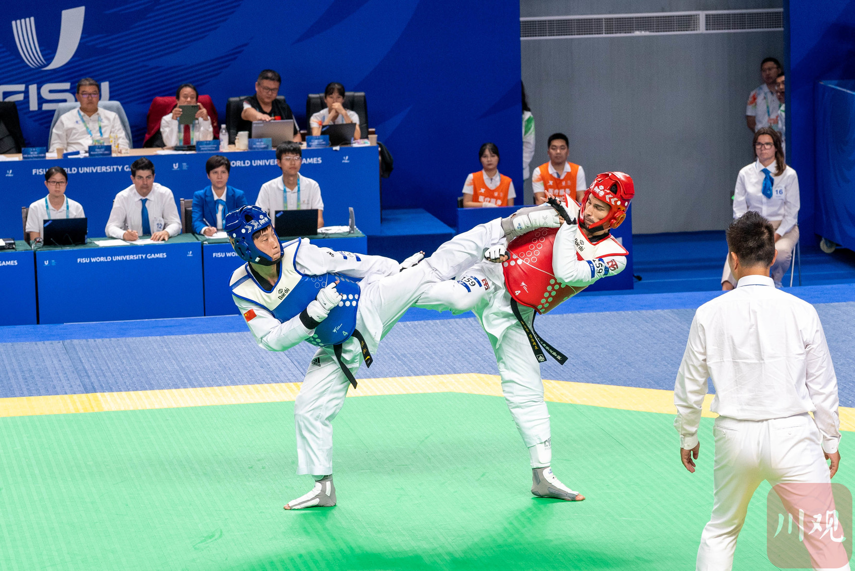 8月1日,成都第31届世界大学生夏季运动会跆拳道项目继续在四川大学望江校区体育馆进行。在今日举行的比赛中,中国队力压对手,收获男子80公斤级、女子67公斤级金牌,并将女子49公斤级铜牌收入囊中。