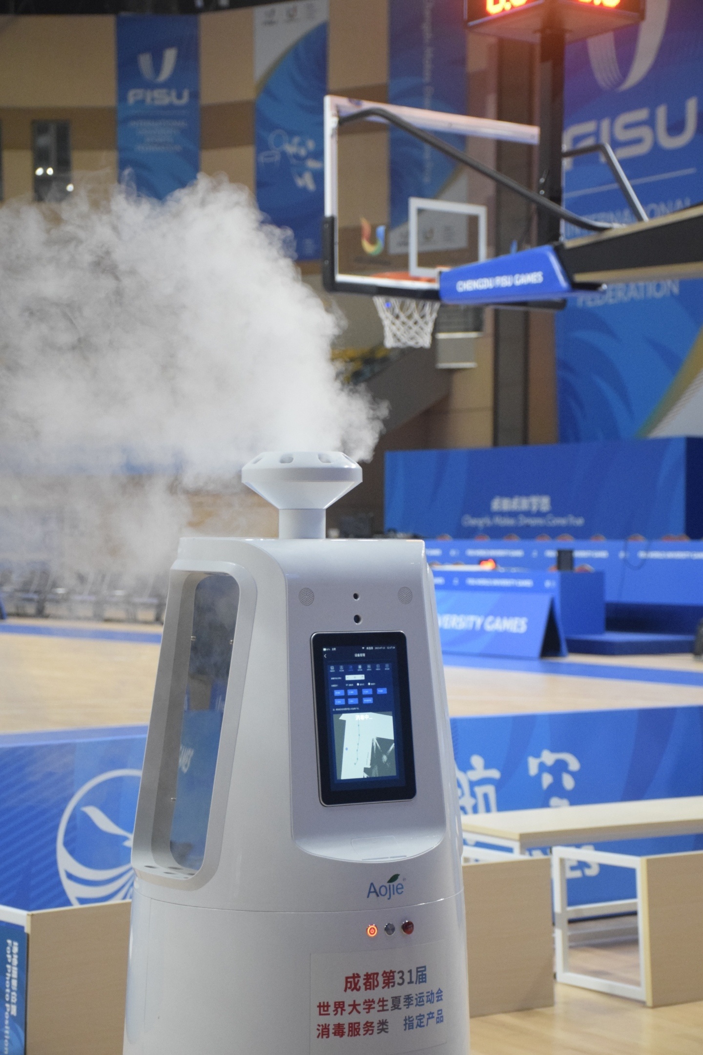 为了提升运动员与观众朋友的比赛观赛体验,场馆内还配备“三大神器”。电子科技大学篮球场馆中心医疗防疫副经理代志国介绍,整个场馆的科技与智慧体现在病媒生物智能监测系统、空气质量在线监测系统及消毒机器人上。