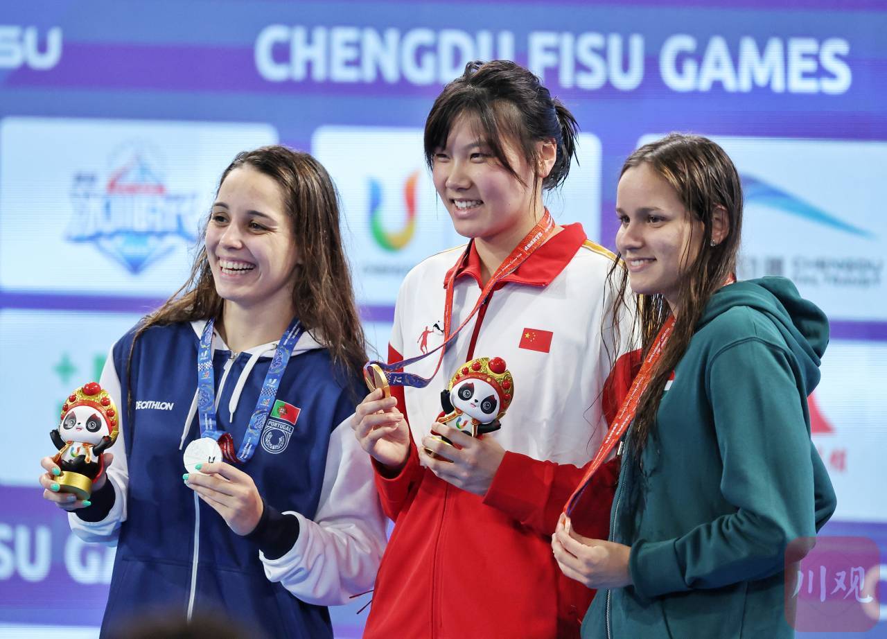 柳雅欣(中间)获成都大运会女子200米仰泳金牌