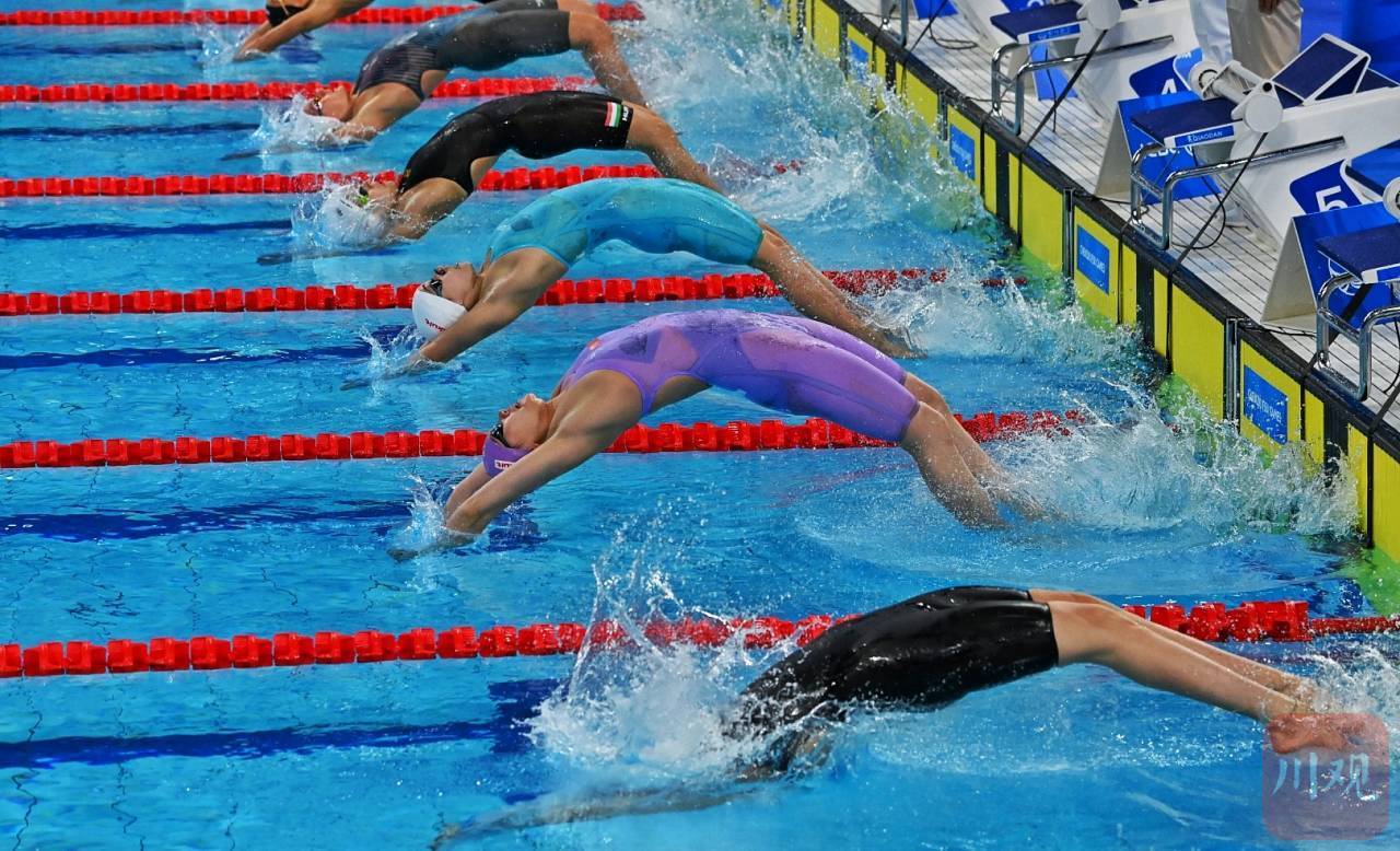 柳雅欣(紫色泳衣者)获成都大运会女子200米仰泳金牌