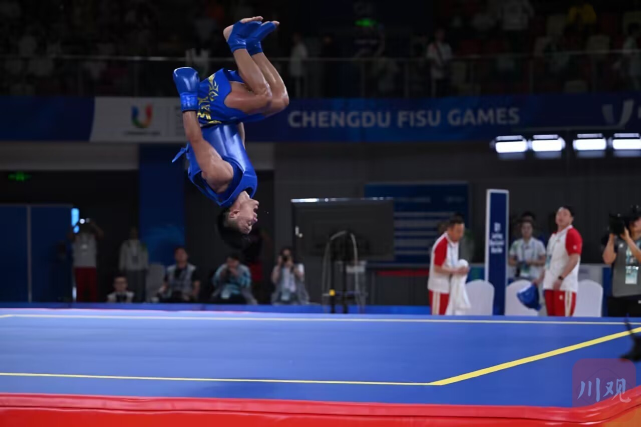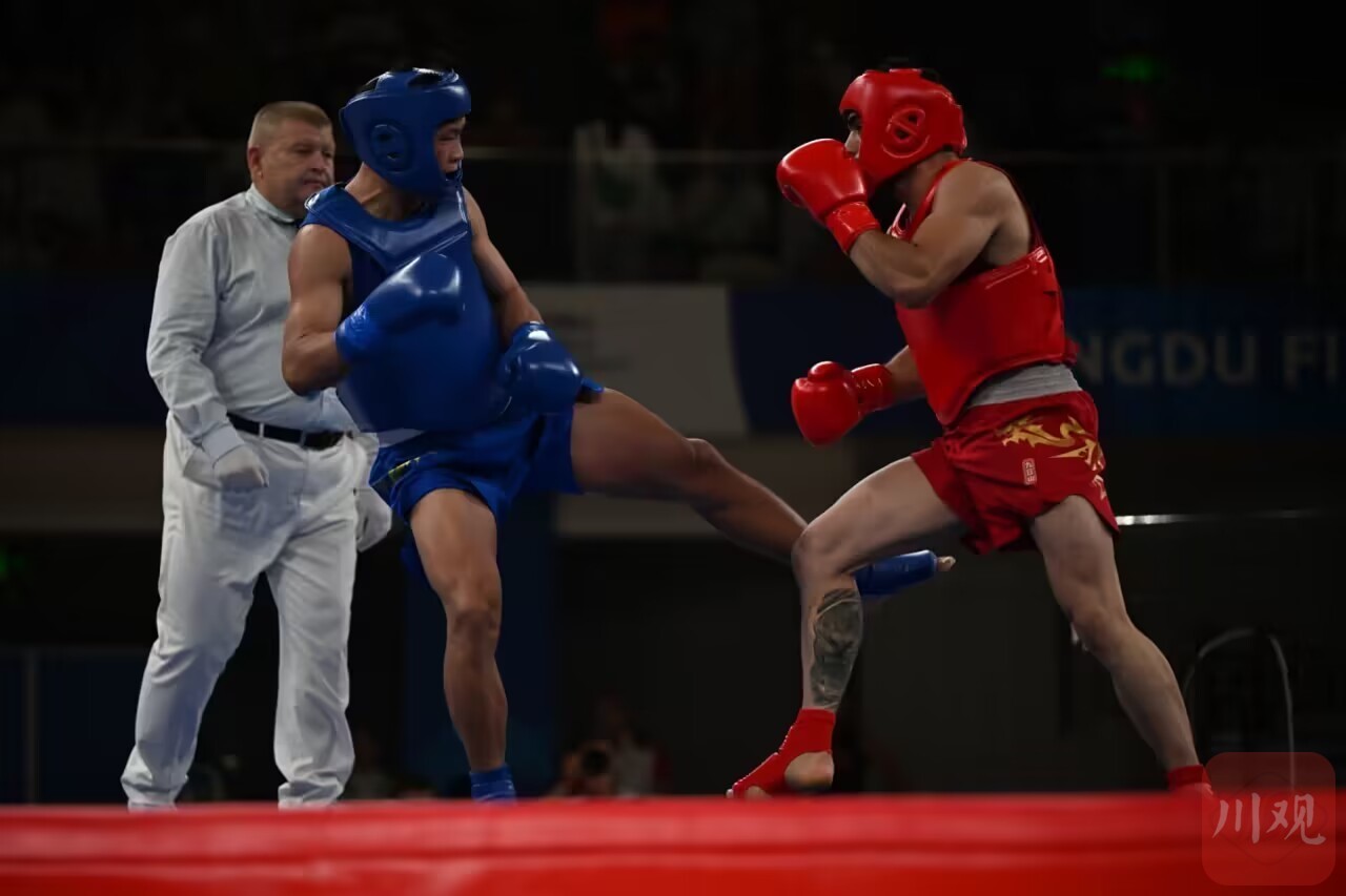 8月3日,成都第31届世界大学生夏季运动会武术项目迎来收官之日,在武术项目散打男子80公斤级决赛中,中国选手柳文龙2∶0击败伊朗选手夺得金牌。